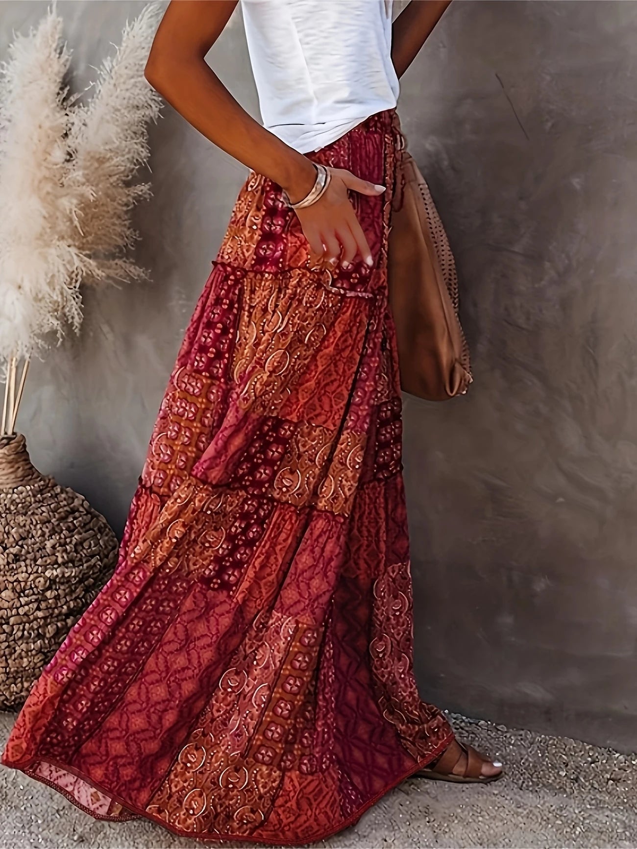 Tropical Print Multi-Layered Maxi Skirt 8 -24