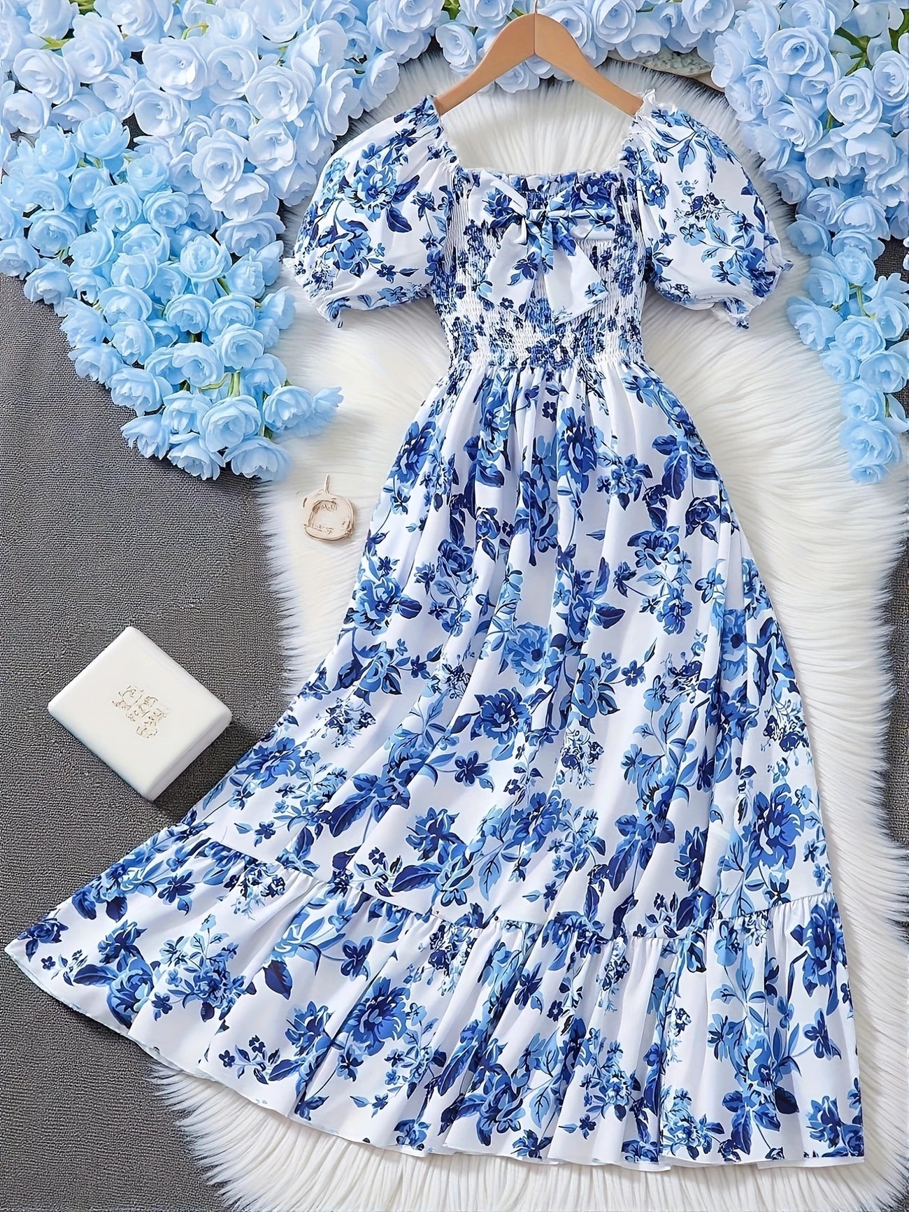Blue Floral Off-Shoulder Maxi Dress with Bow Detail - Casual Summer Dress for Teens Ages 13 - 16...Regular price £15.99Sale price £15.99 Regular priceUnit price per -