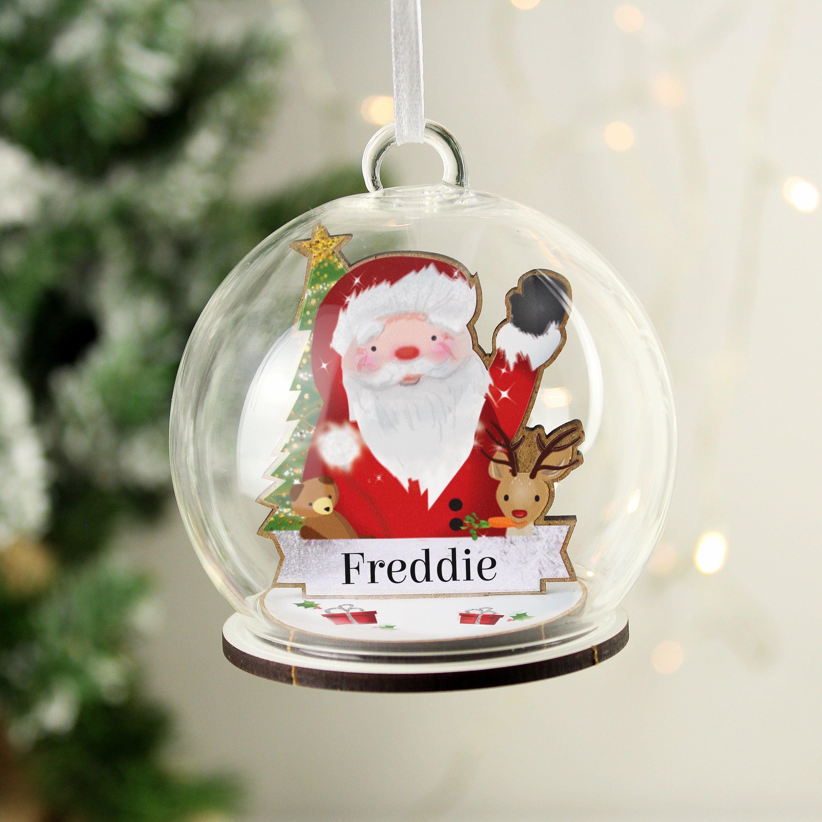 Personalised Wooden Santa Glass Bauble