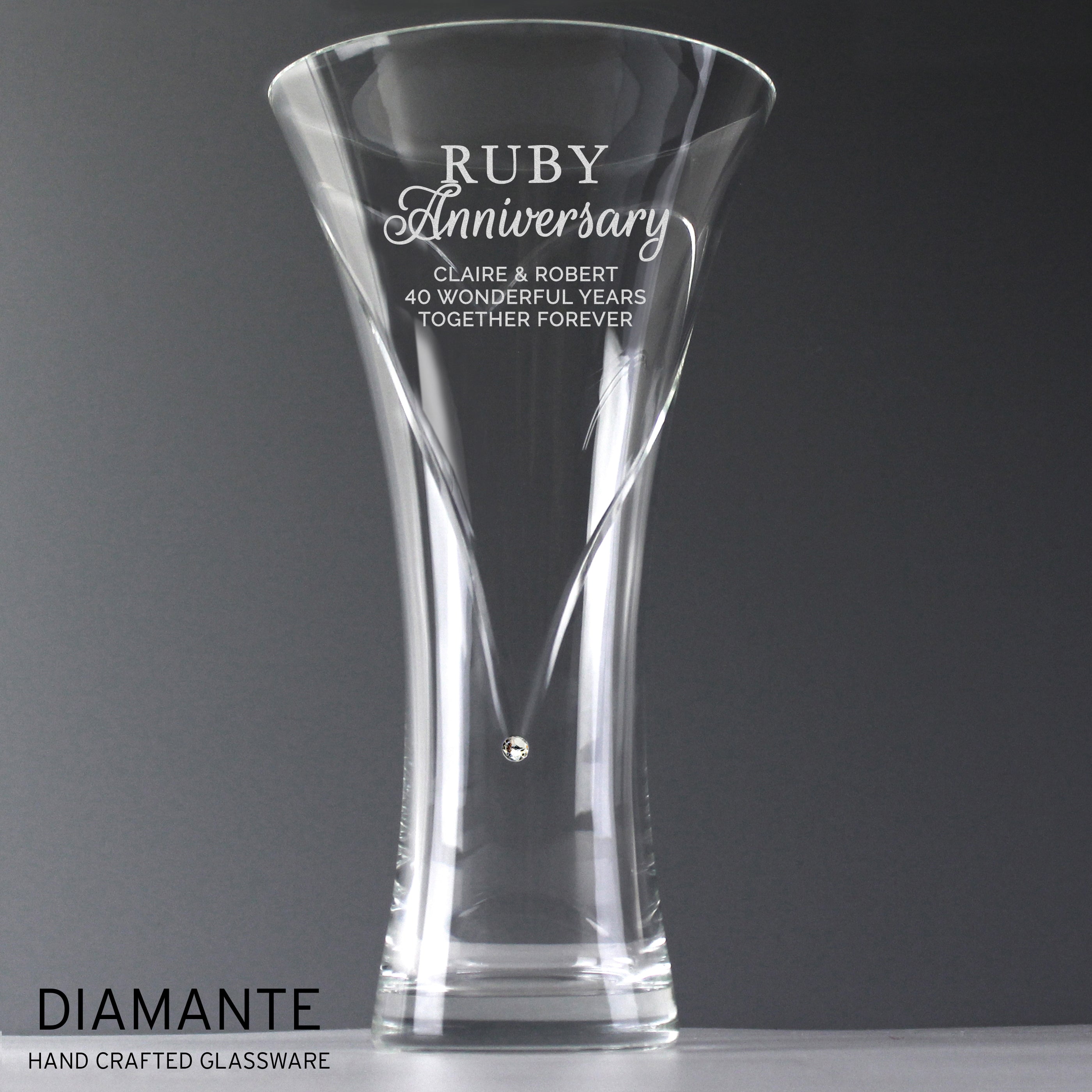 Personalise this hand cut large diamante vase with a message up to 3 lines of 20 characters."Ruby Anniversary"...Regular price £44.99Sale price £44.99 Regular priceUnit price per -