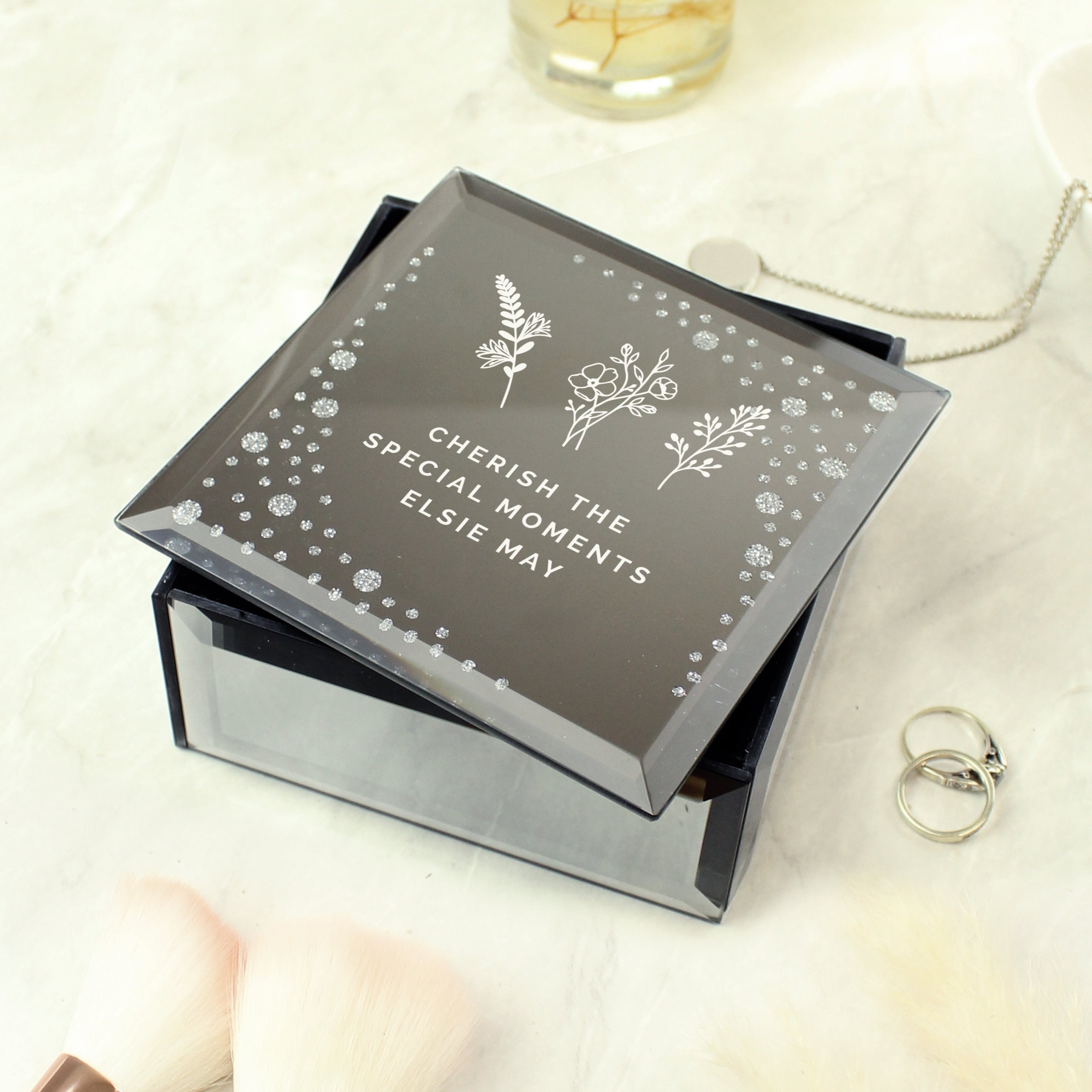 Personalised Floral Butterfly Diamante Glass Trinket Box