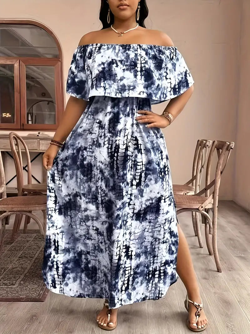 Off-Shoulder Tie-Dye Maxi Dress Curve