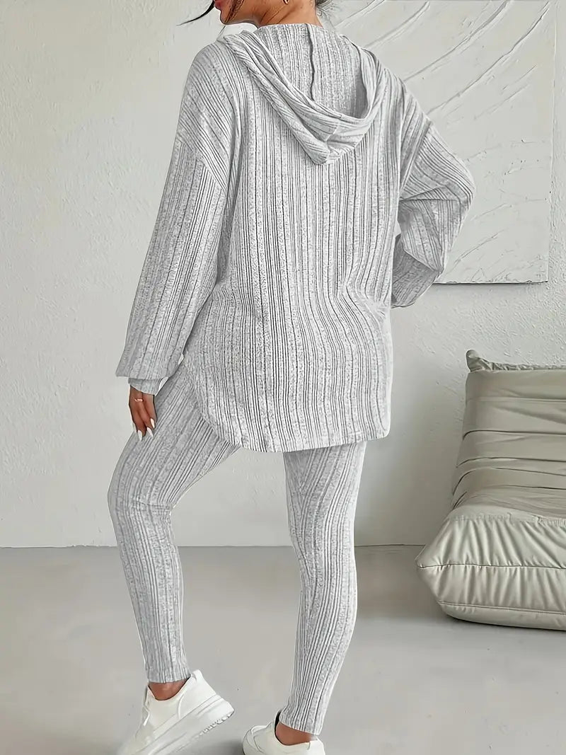 Ribbed Casual Knit Polyester Hooded Long Sleeve Pullover with Slit Hem Trousers - Slight Stretch Hoodie and Pants...Regular price £29.99Sale price £29.99 Regular priceUnit price per -