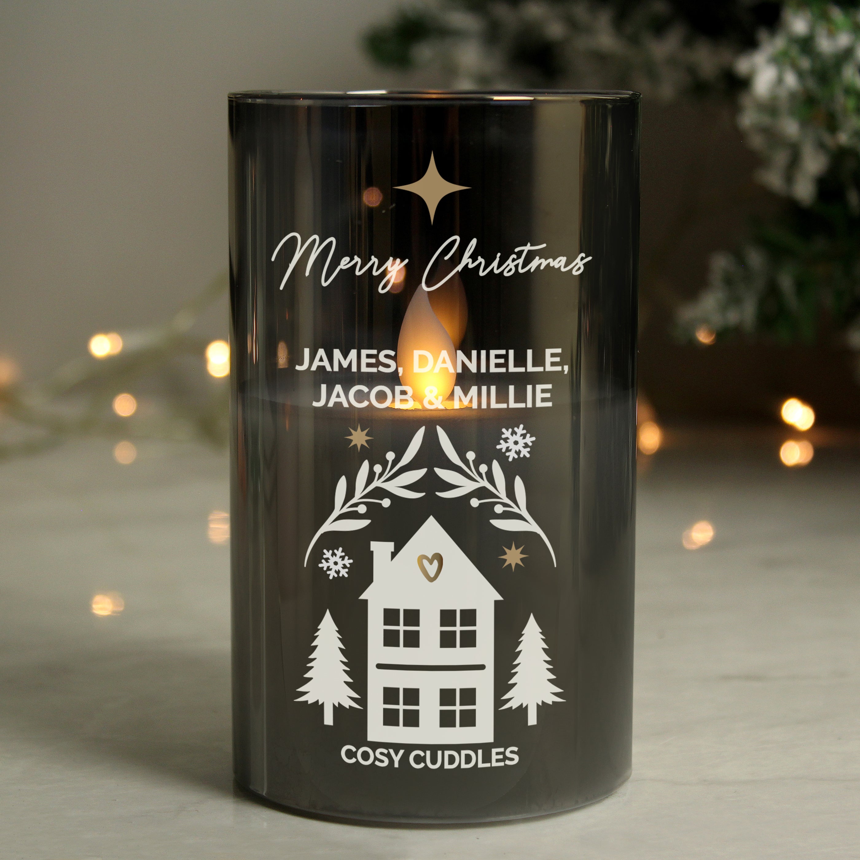 Personalised Christmas Smoked Glass LED Candle