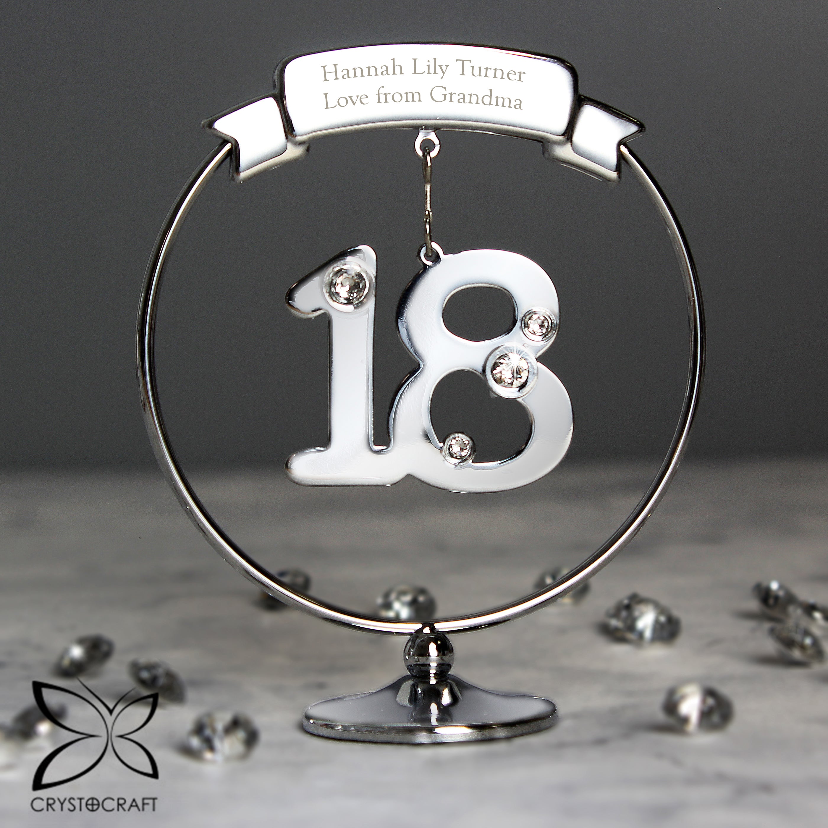 Mark their 18th Birthday with this elegant Crystocraft ornament. Dangling from a personalised round silver stand is a...Regular price £16.99Sale price £16.99 Regular priceUnit price per -