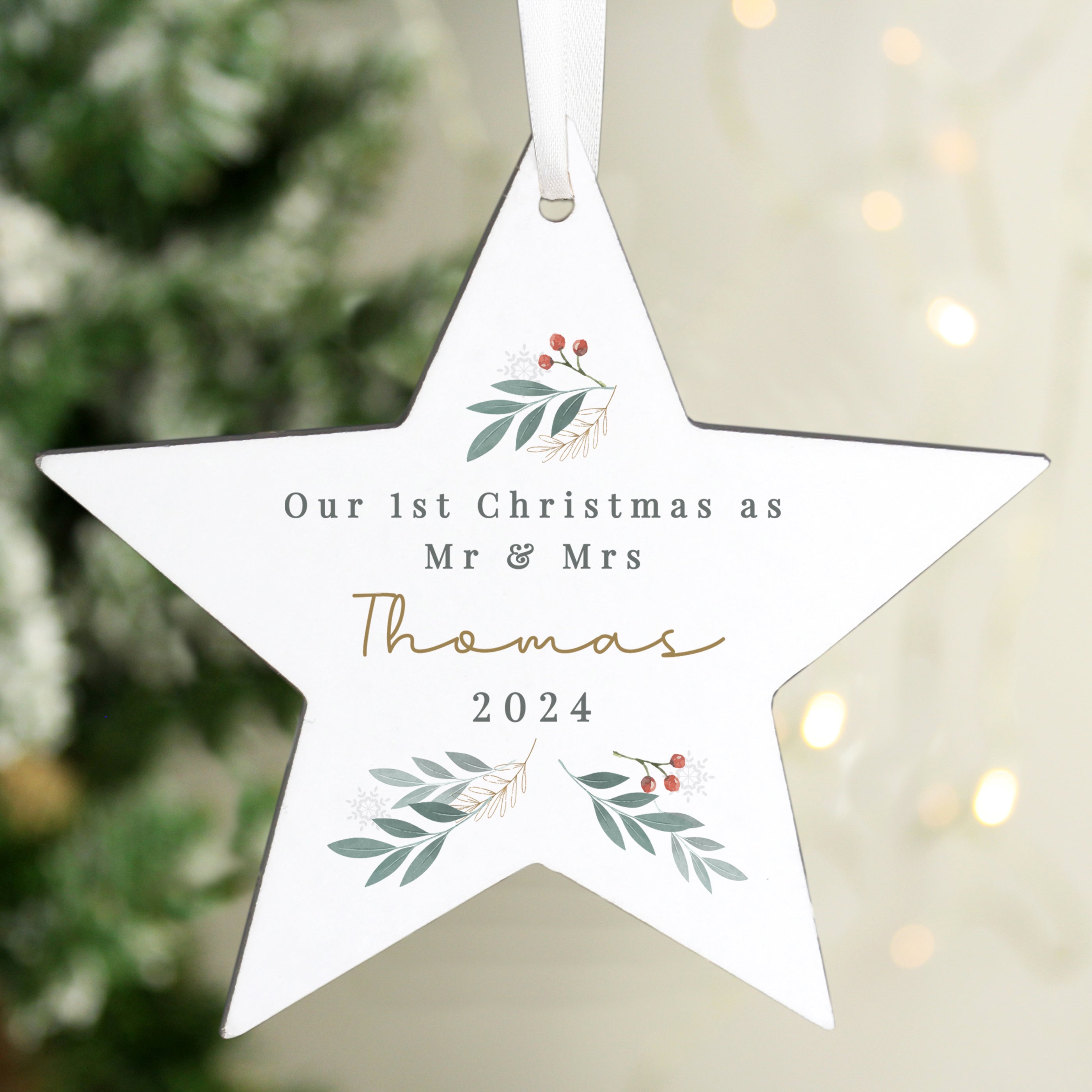 Personalised Christmas Fair Isle Wooden Star Ornament