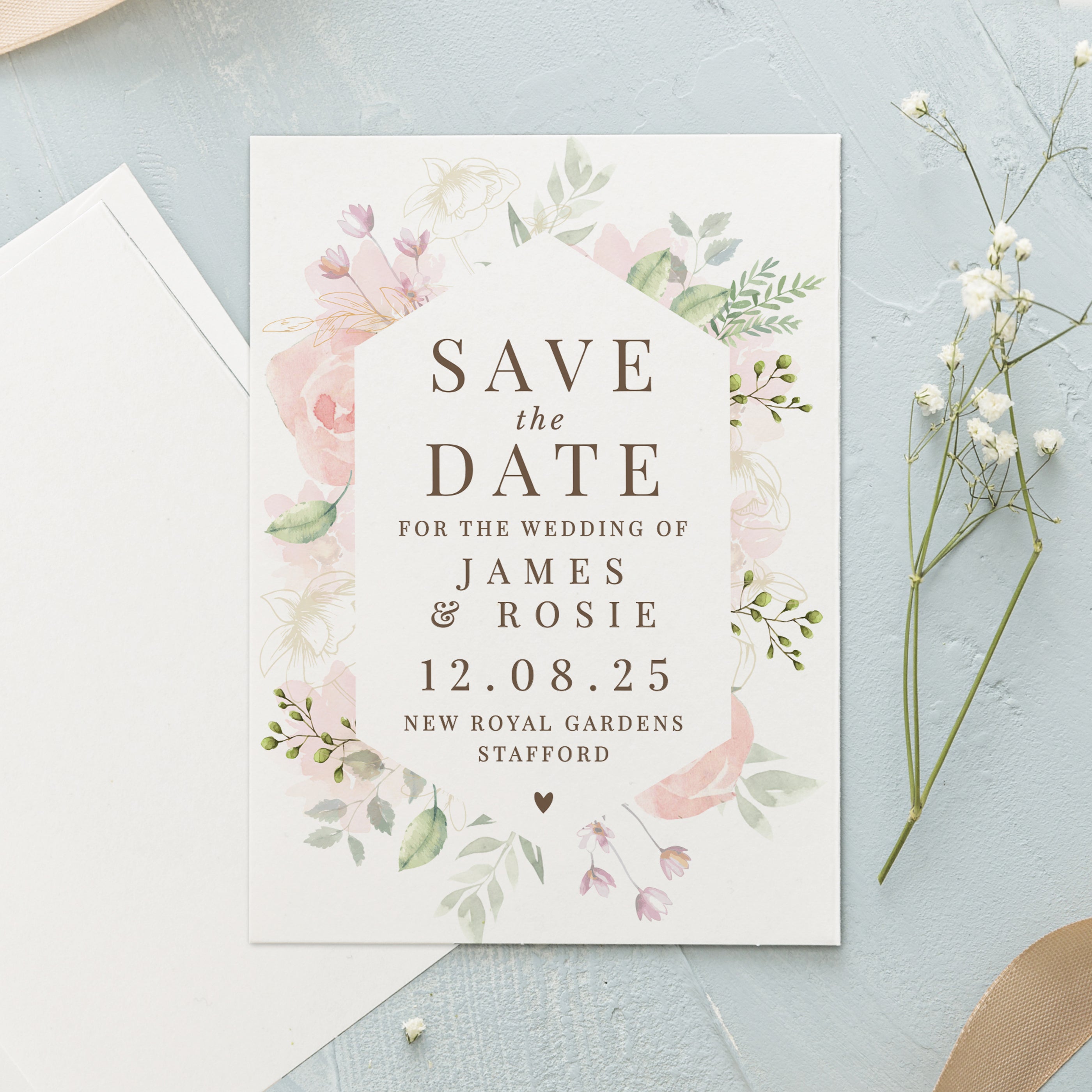 Send a stylish reminder for your wedding guests to save the date with this personalised soft floral design....Regular price £9.99Sale price £9.99 Regular priceUnit price per -