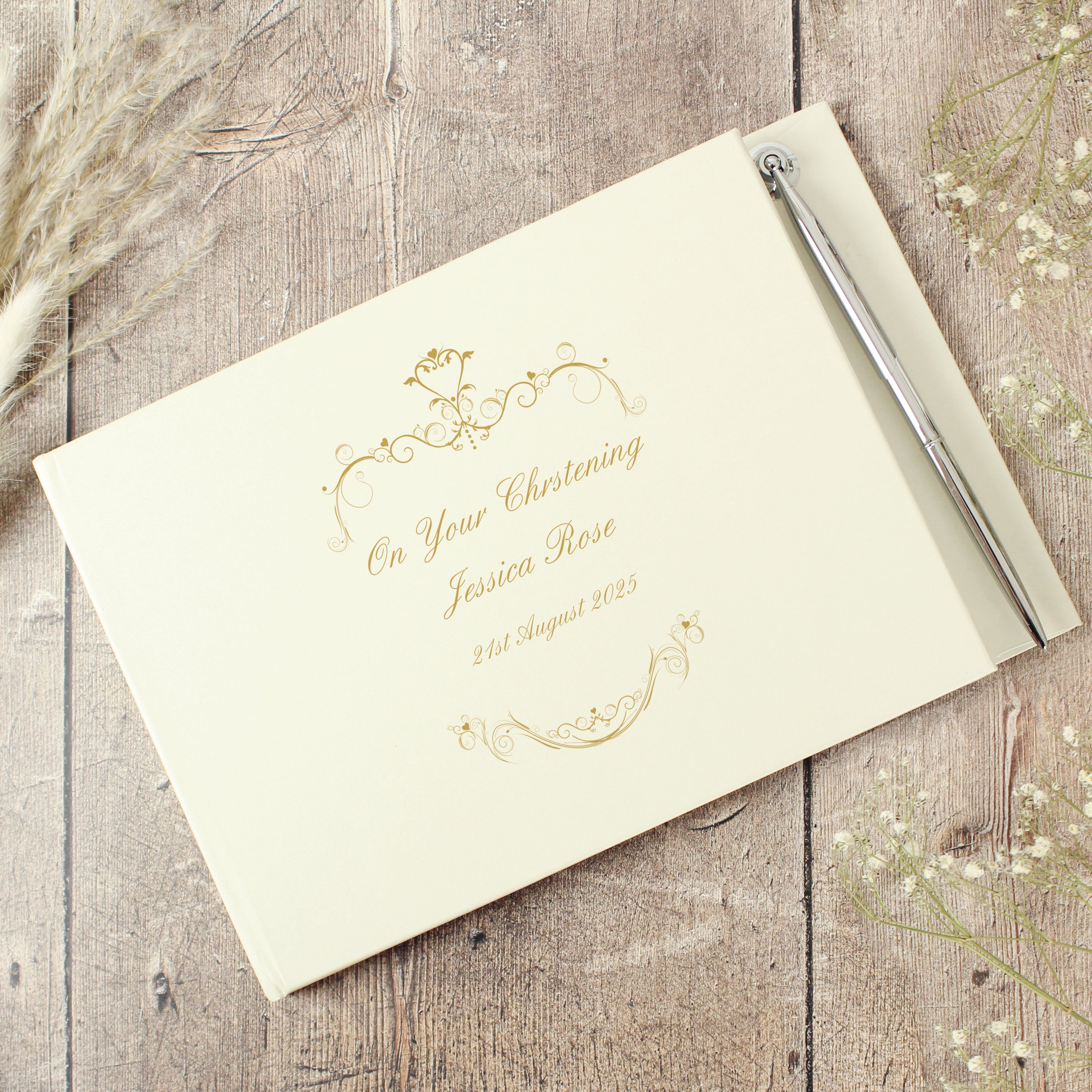 Personalised Gold Ornate Swirl Hardback Guest Book & Pen