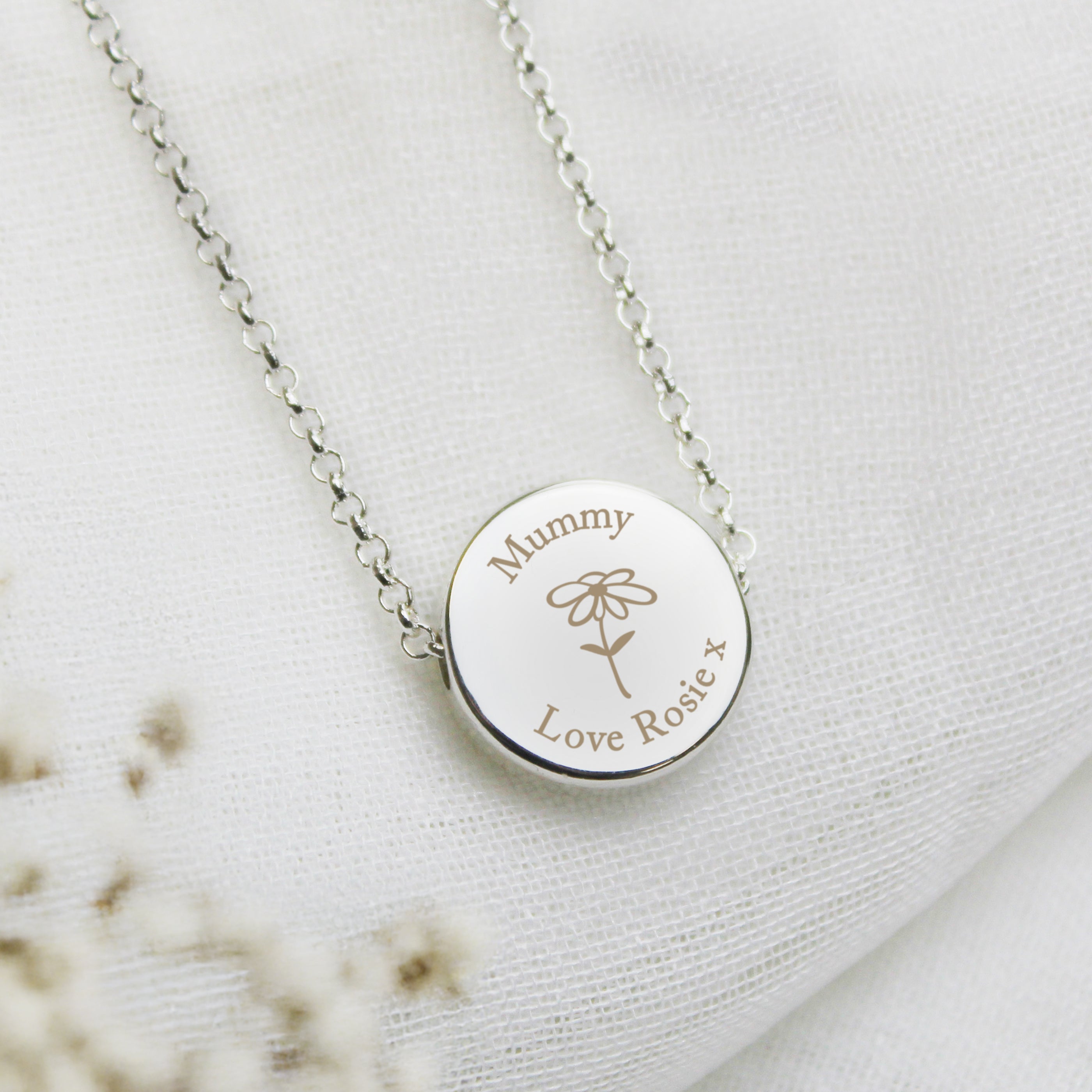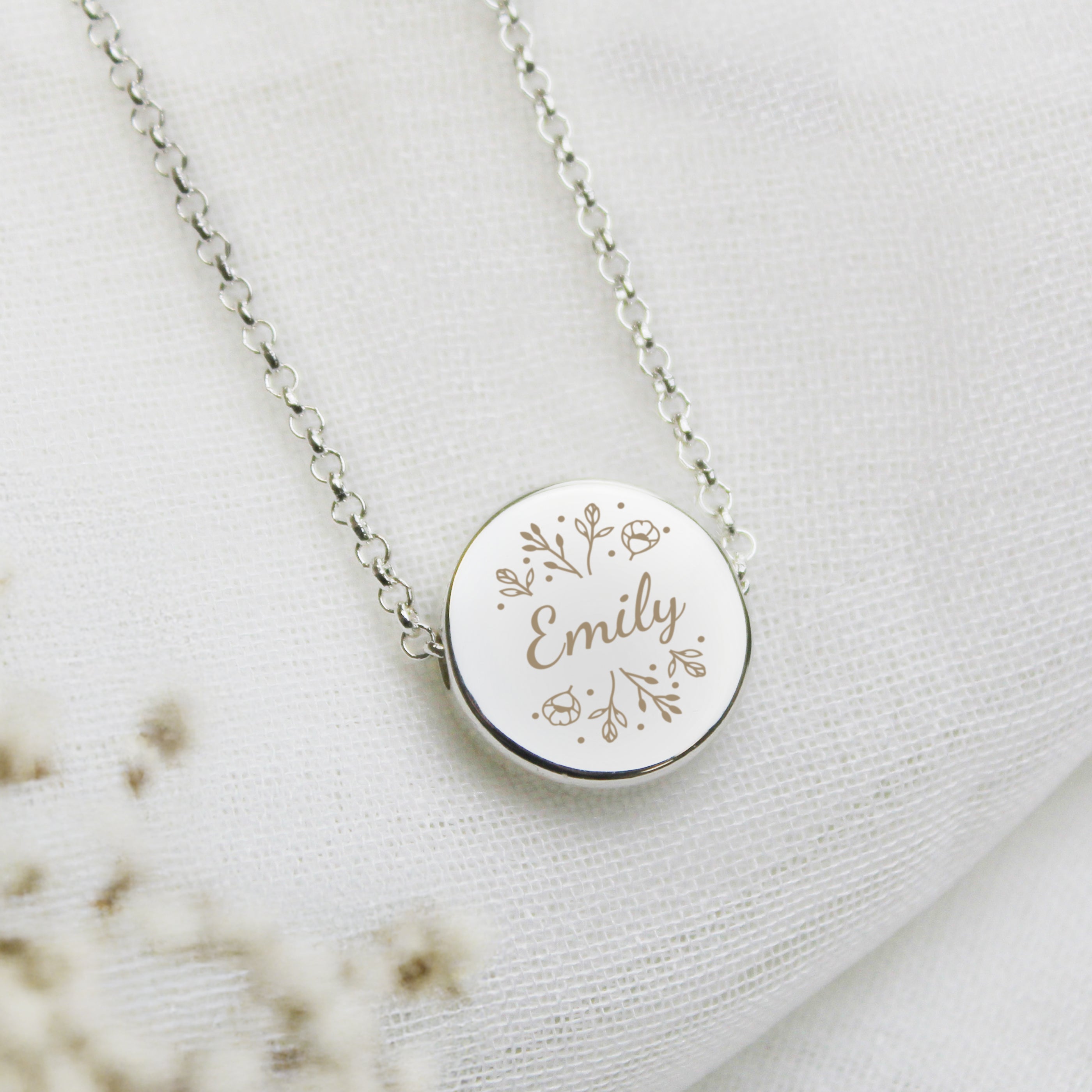 Personalised Silver Tone Wild Flowers Disc Necklace