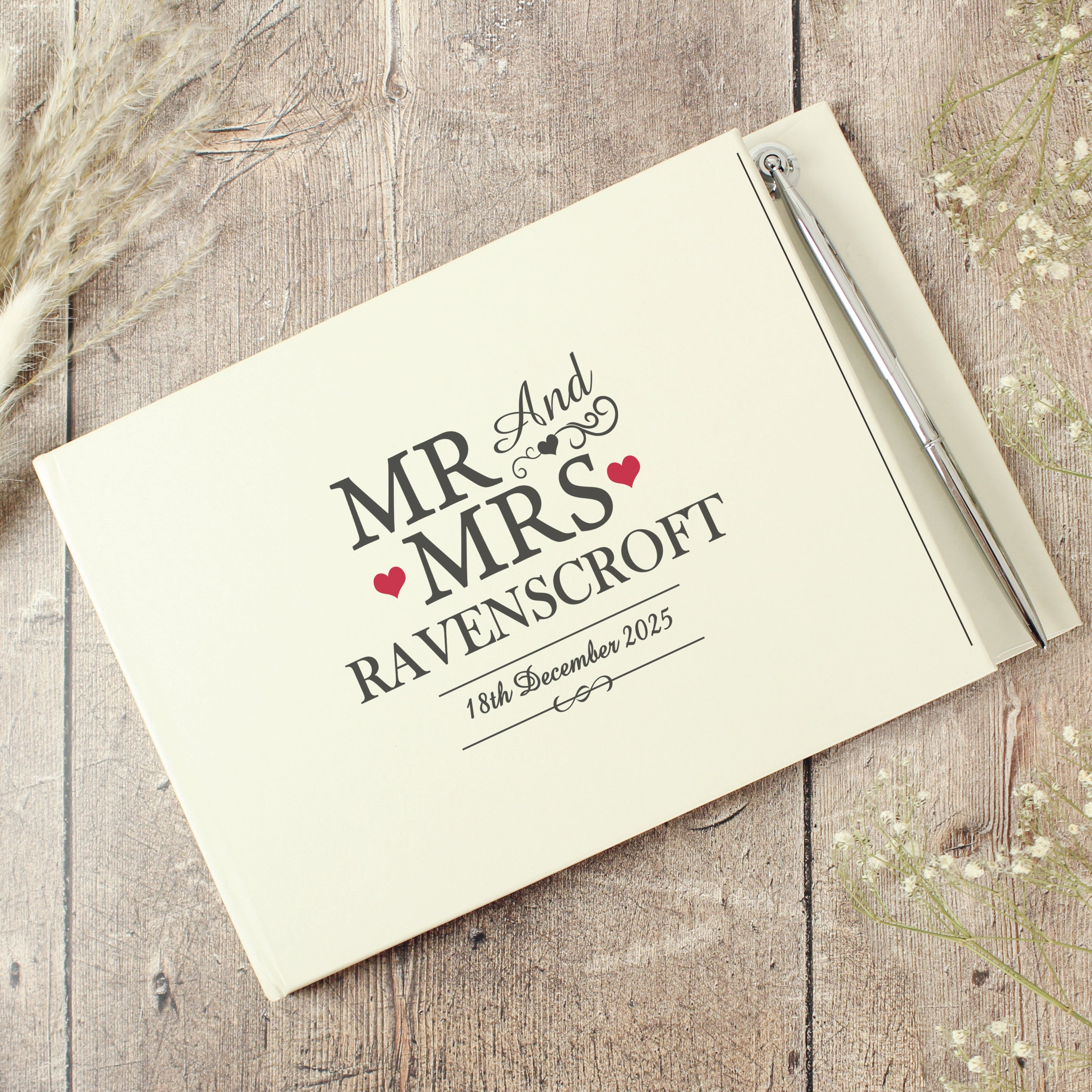 Personalised Mr & Mrs Hardback Guest Book & Pen