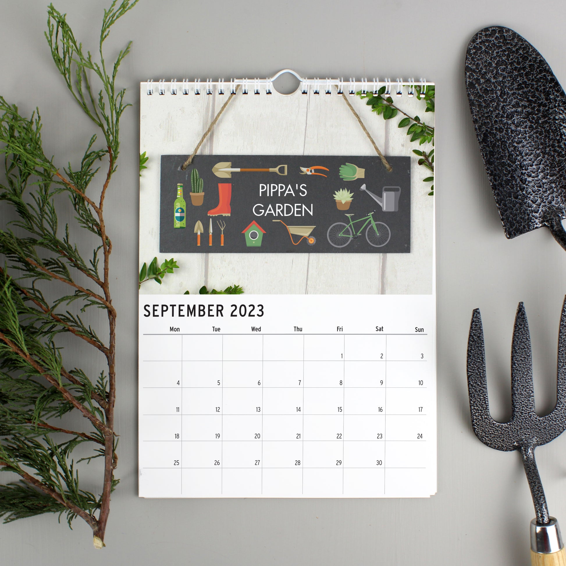 Personalise the front of the calendar with any name up to 12 characters and a message over two lines of 20 characters per line.