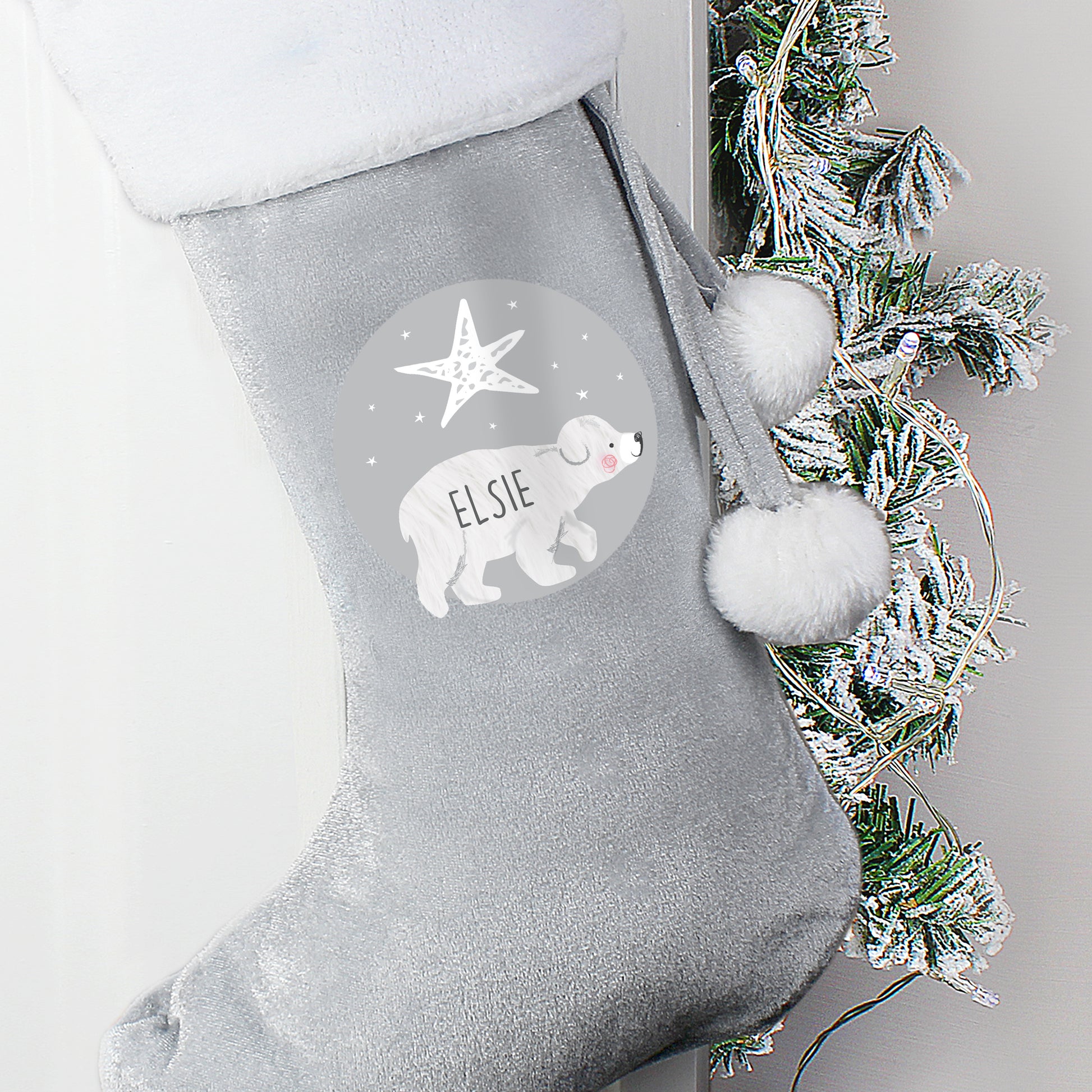 Personalised Baby Polar Bear Luxury Silver Grey Stocking