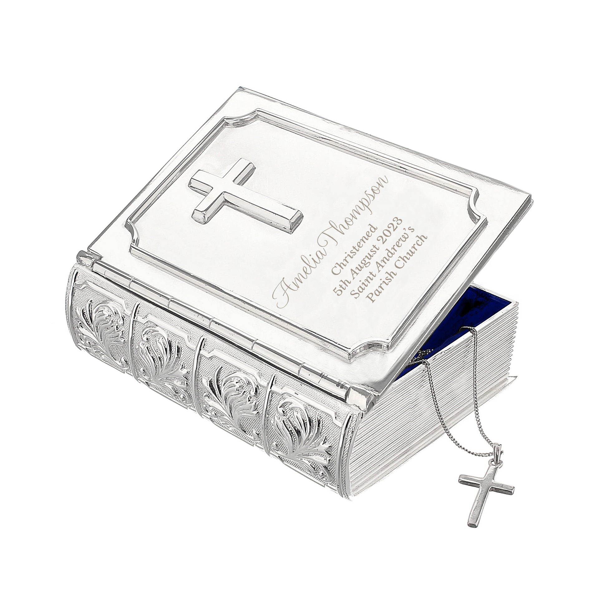 Personalise this silver finish bible trinket with any message over 5 lines.