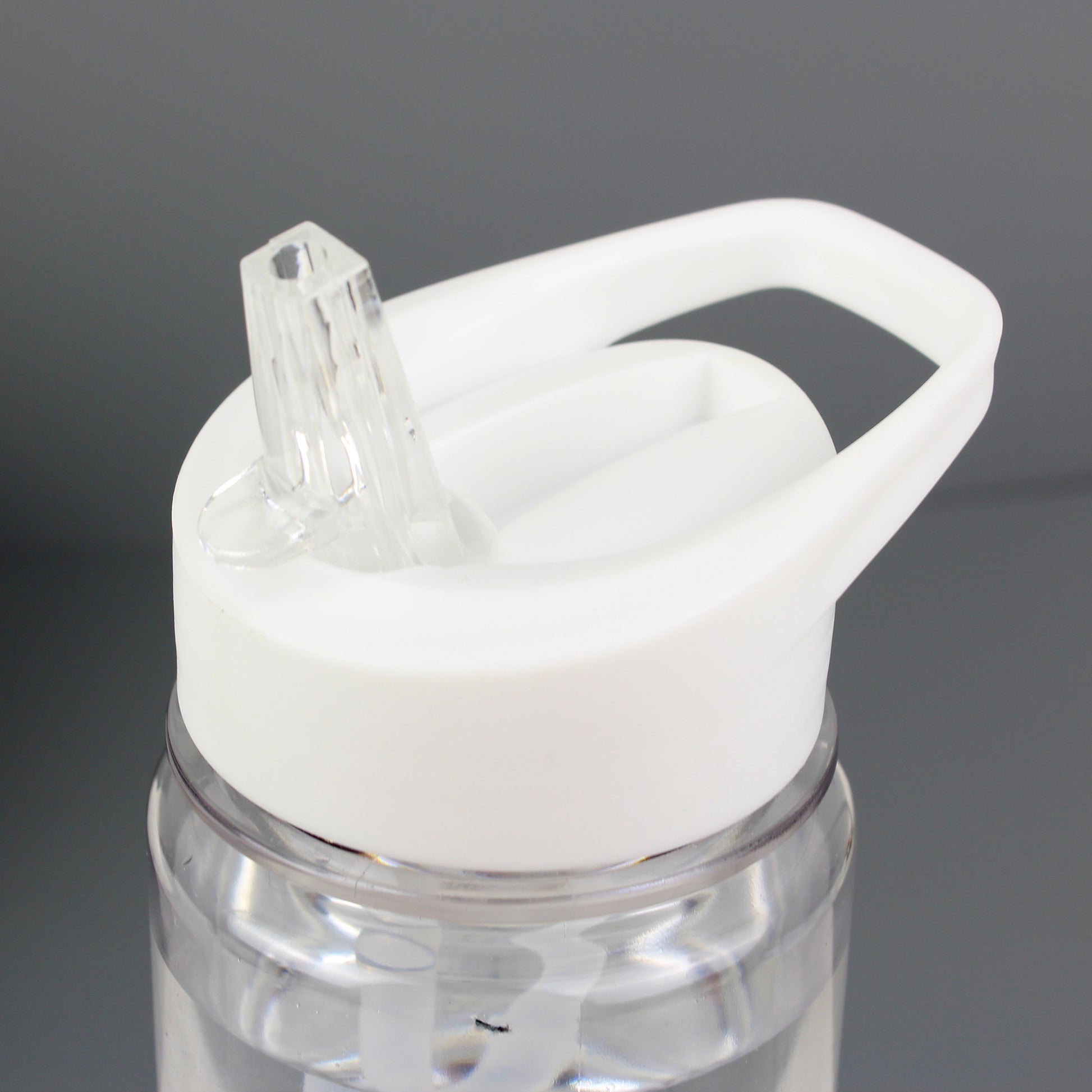 The bottle features a white twist-on lid, clear concealable flip-top drinking spout attached to a straw.