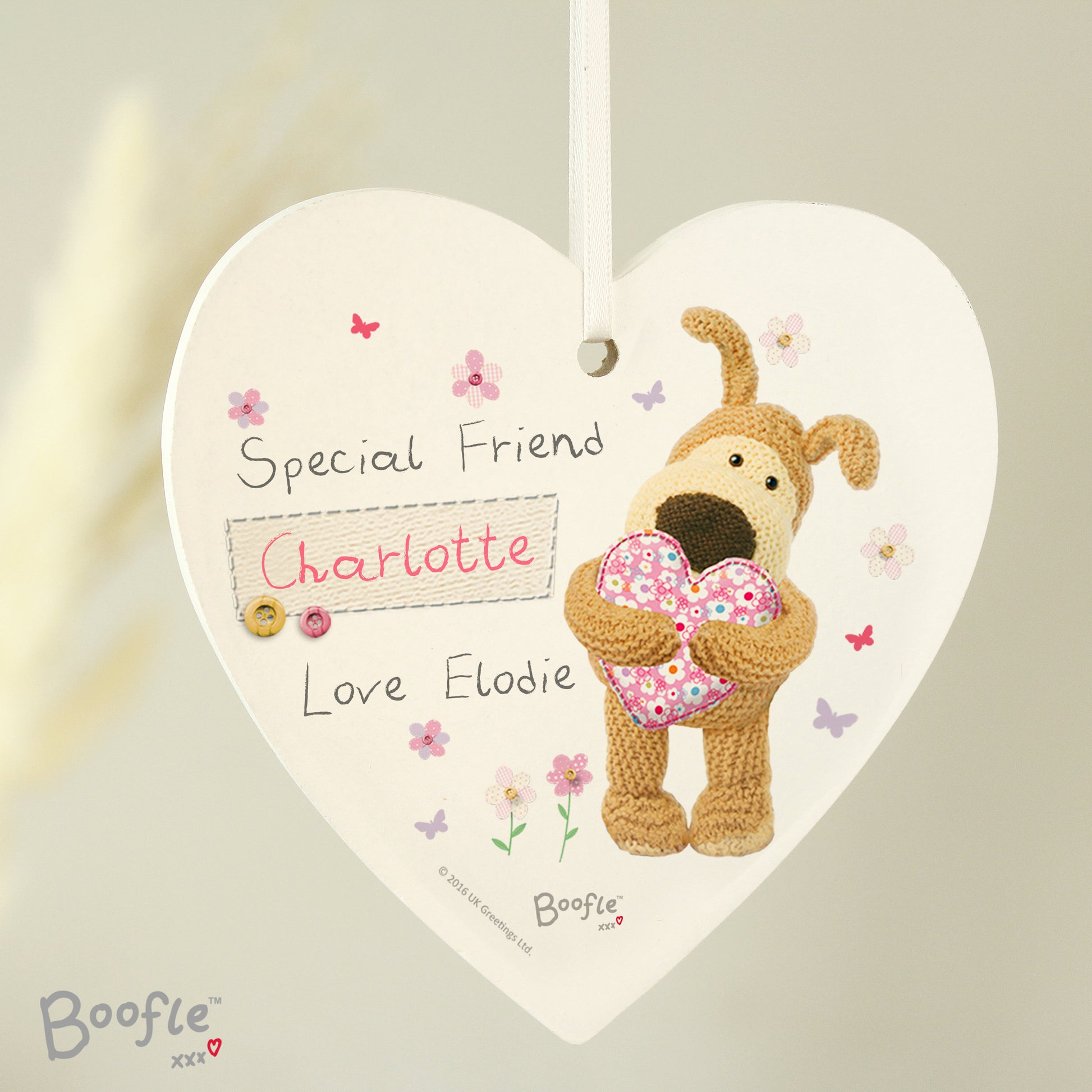 Our Personalised Boofle Wooden Heart Flowers Decoration would make an excellent hanging decoration for the home and is also ideal as a unique and thoughtful gift tag.