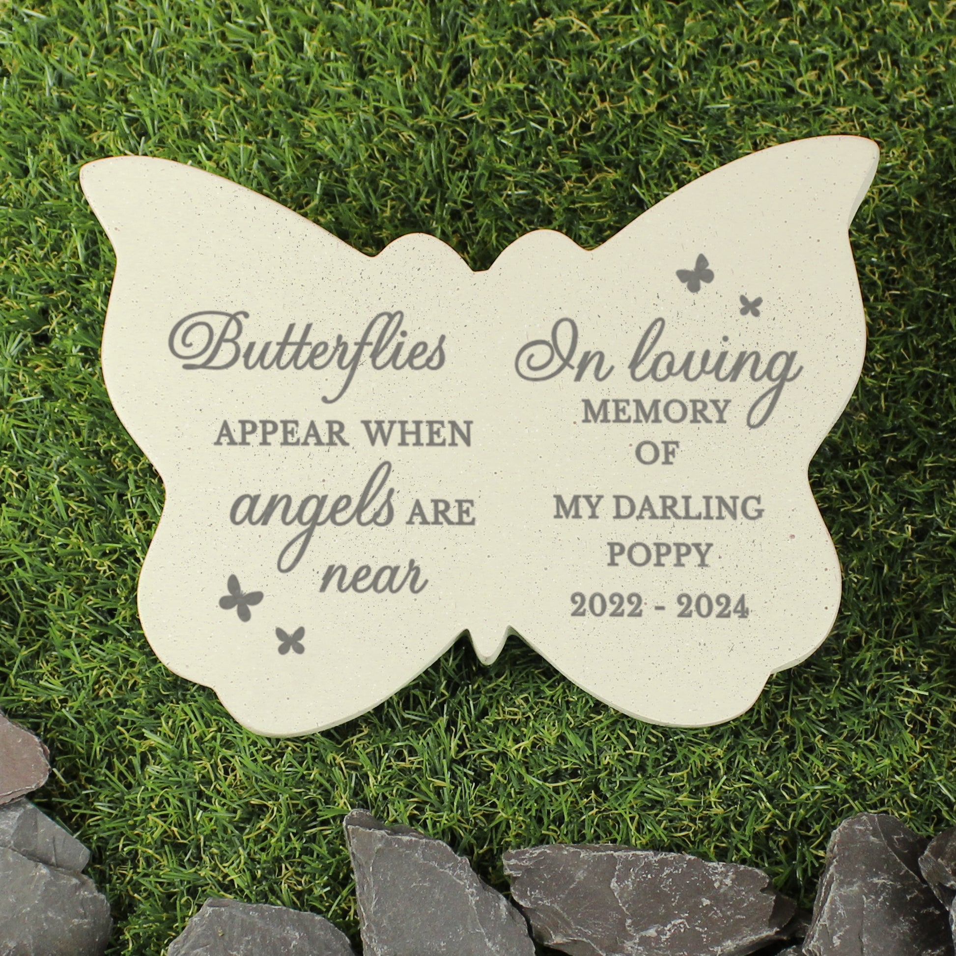 Personalise this Personalised 'In Loving Memory of' Butterfly Memorial with the following: