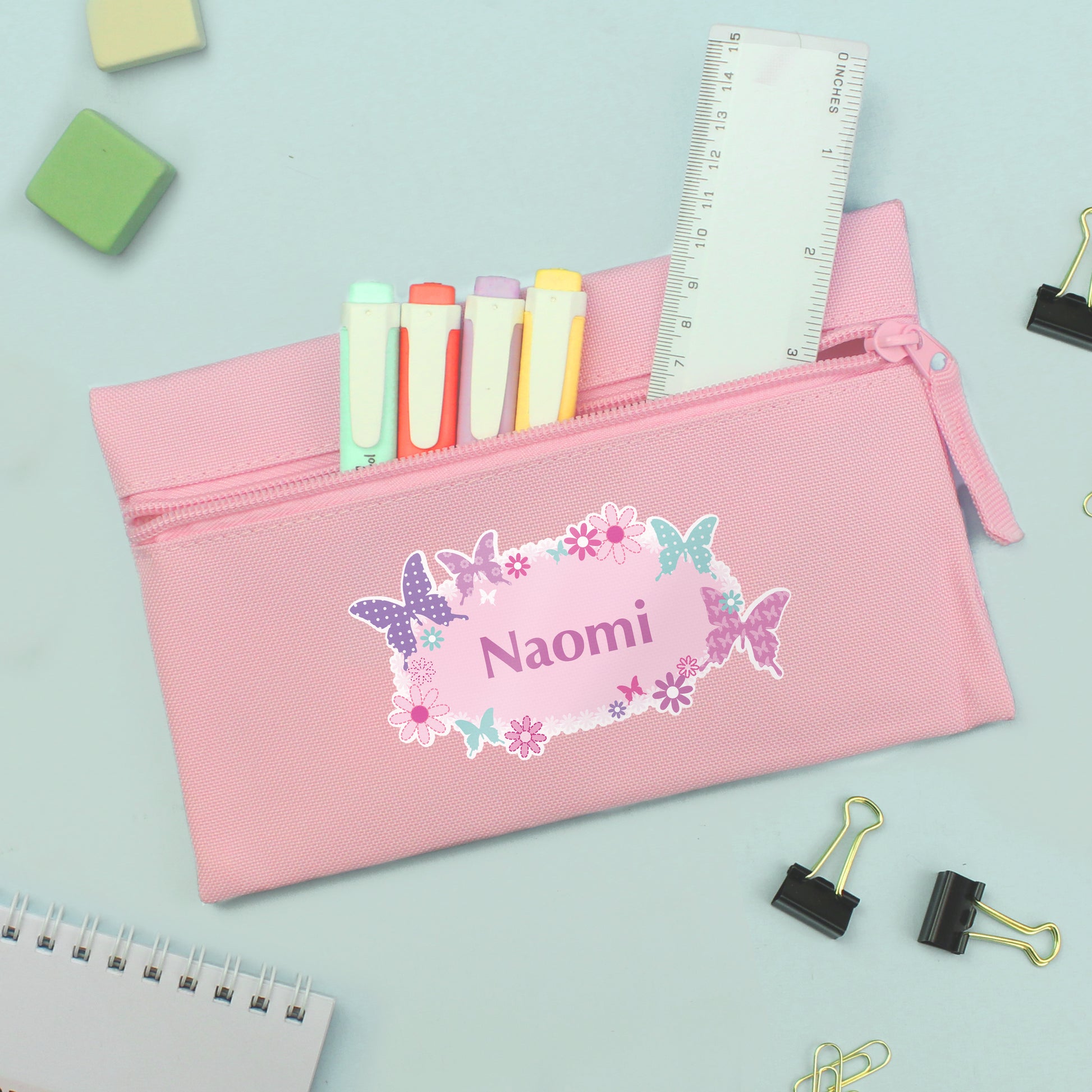 A great gift for school, this Butterfly Pink microfibre pencil case can be personalised with any name up to 12 characters.