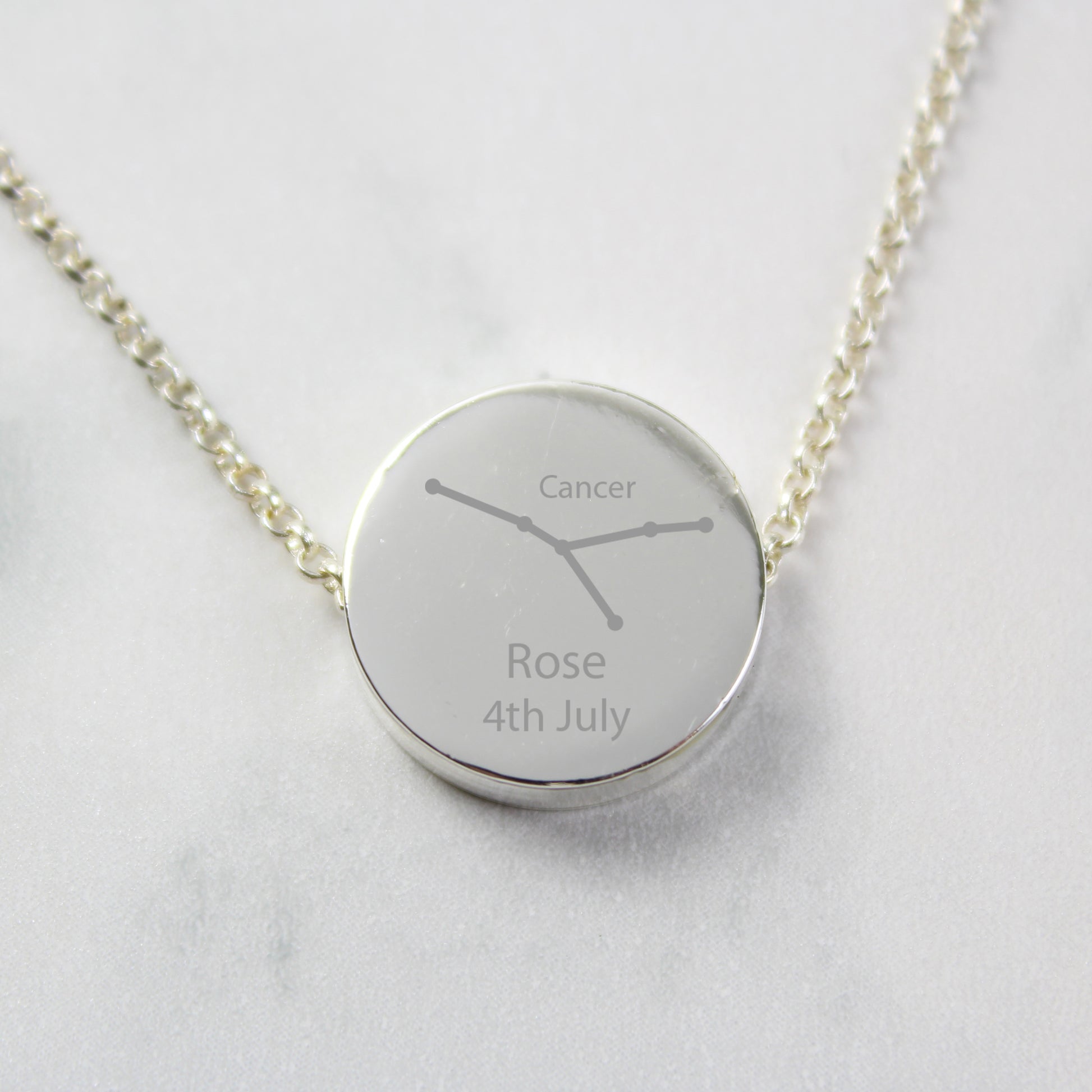 Personalised Cancer Zodiac Star Sign Silver Tone Necklace (21st June - 22nd July)