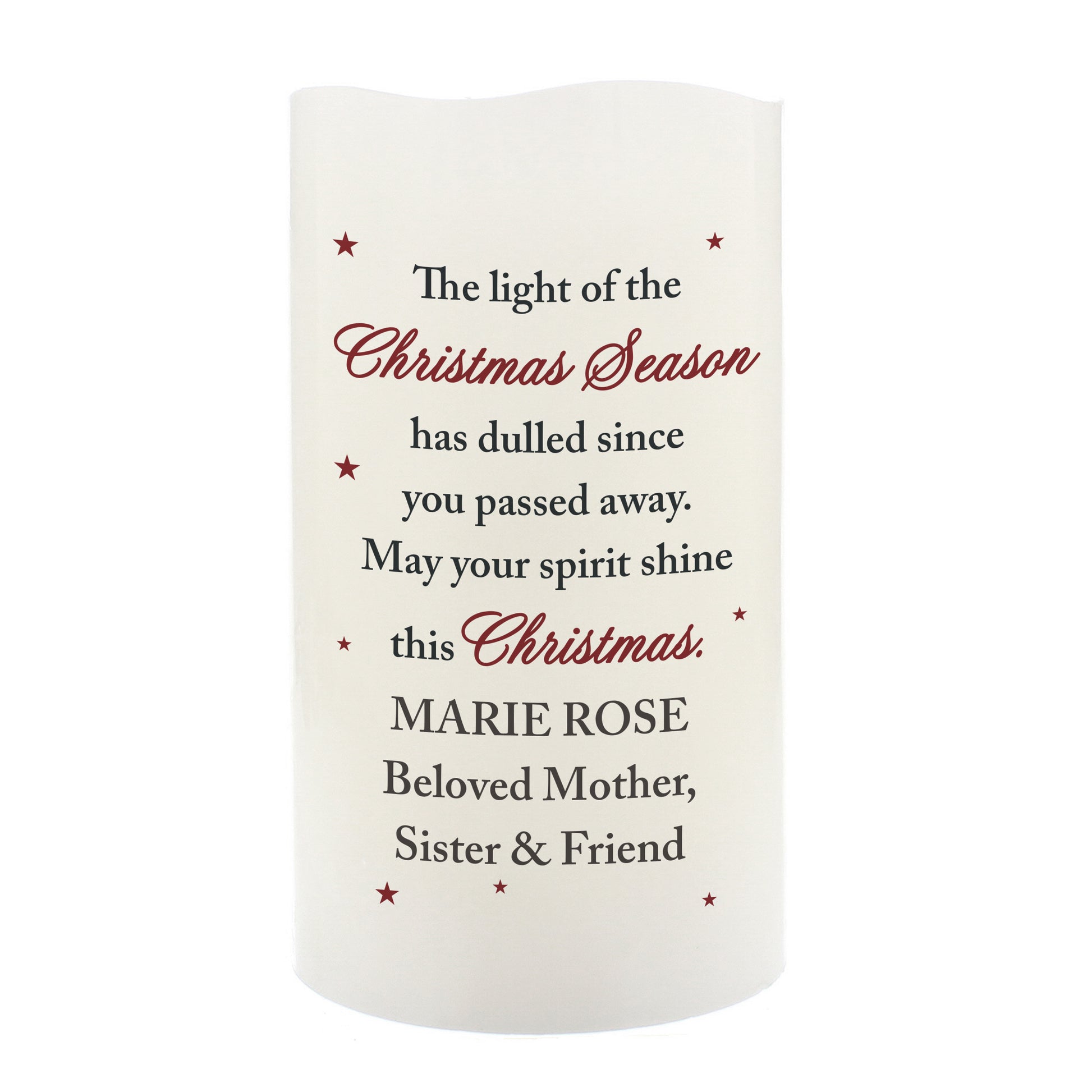 This beautiful Personalised Christmas Season Memorial LED Candle is a beautiful way to remember a loved one.
