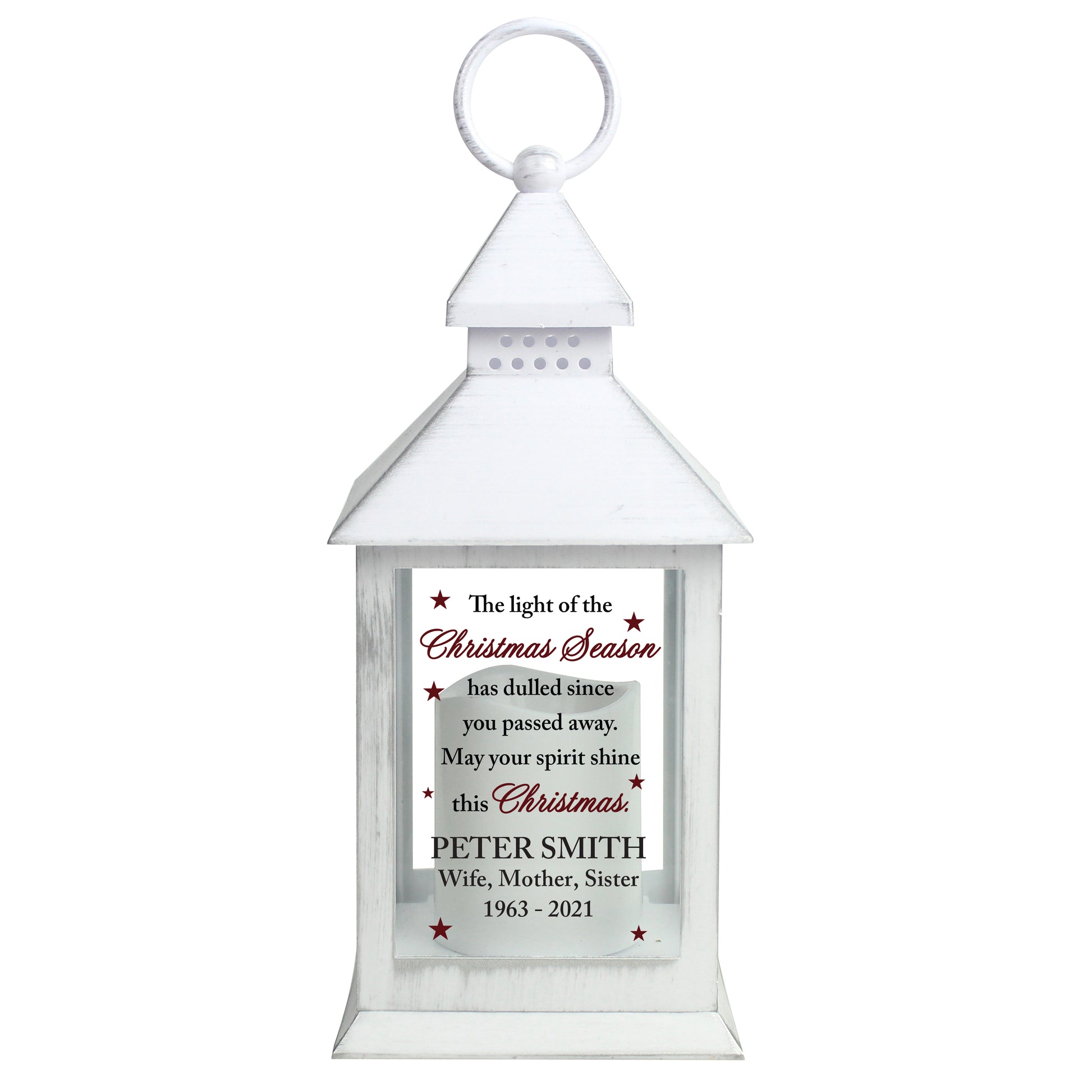 Personalised Christmas Season Memorial White Lantern