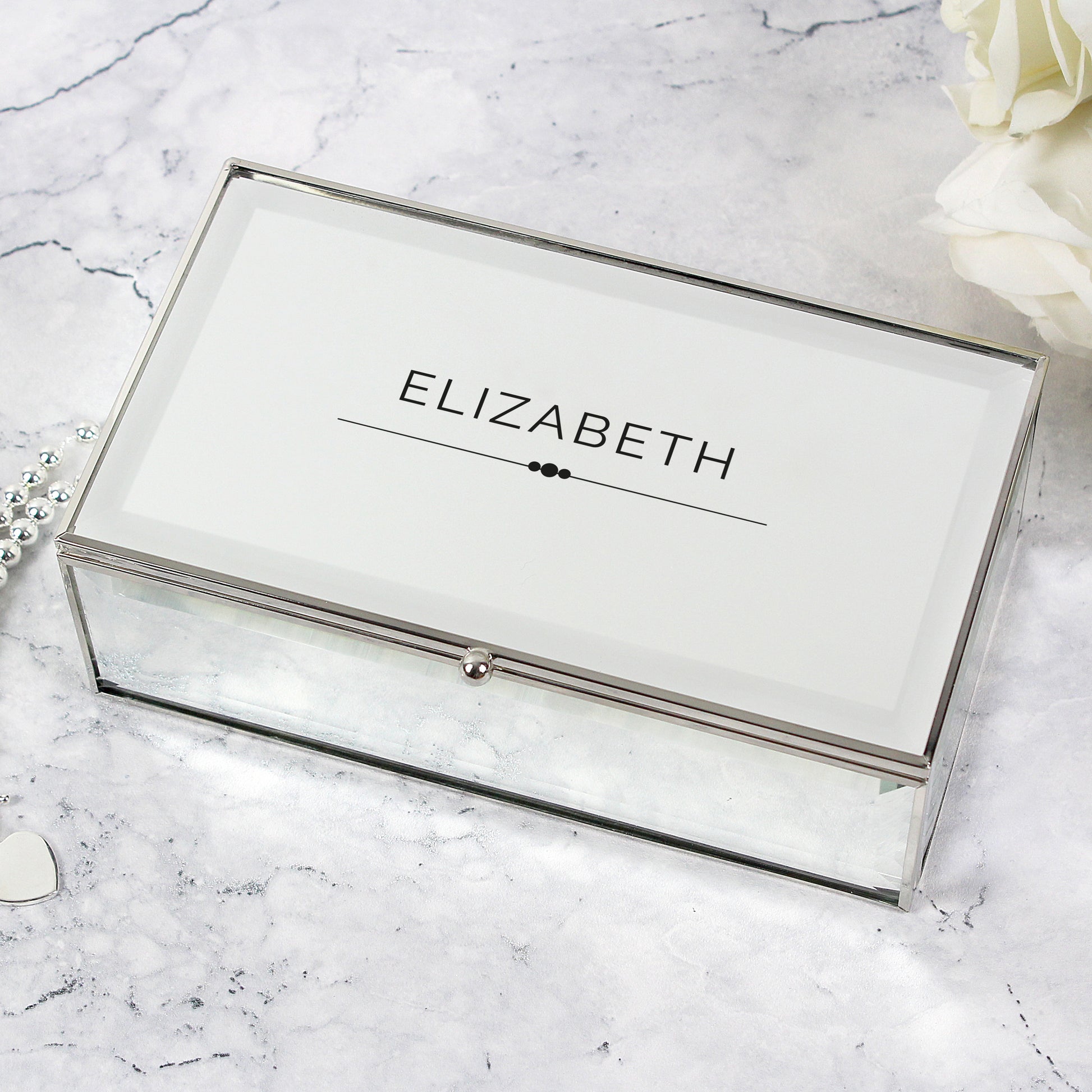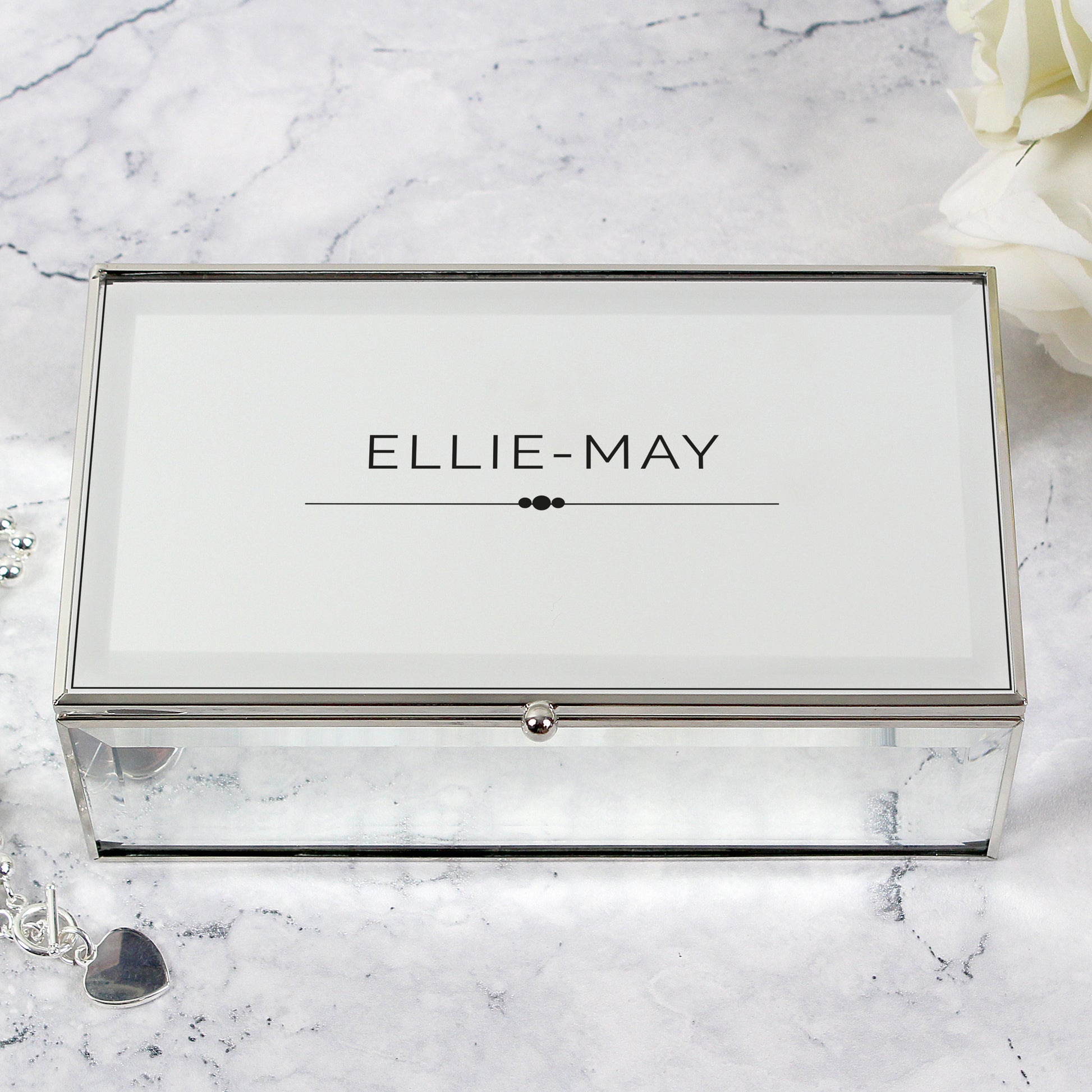This clean modern jewellery box with mirrored finish, features three compartments to store your jewellery.