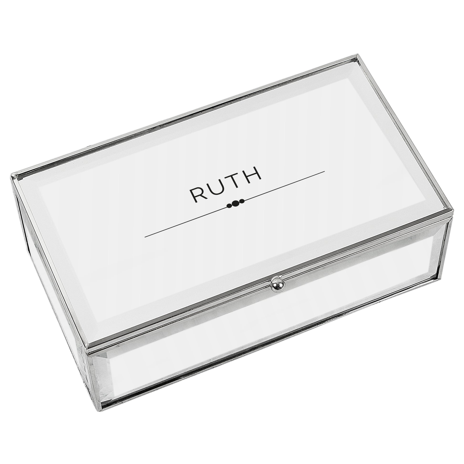 This clean modern jewellery box with mirrored finish, features three compartments to store your jewellery.