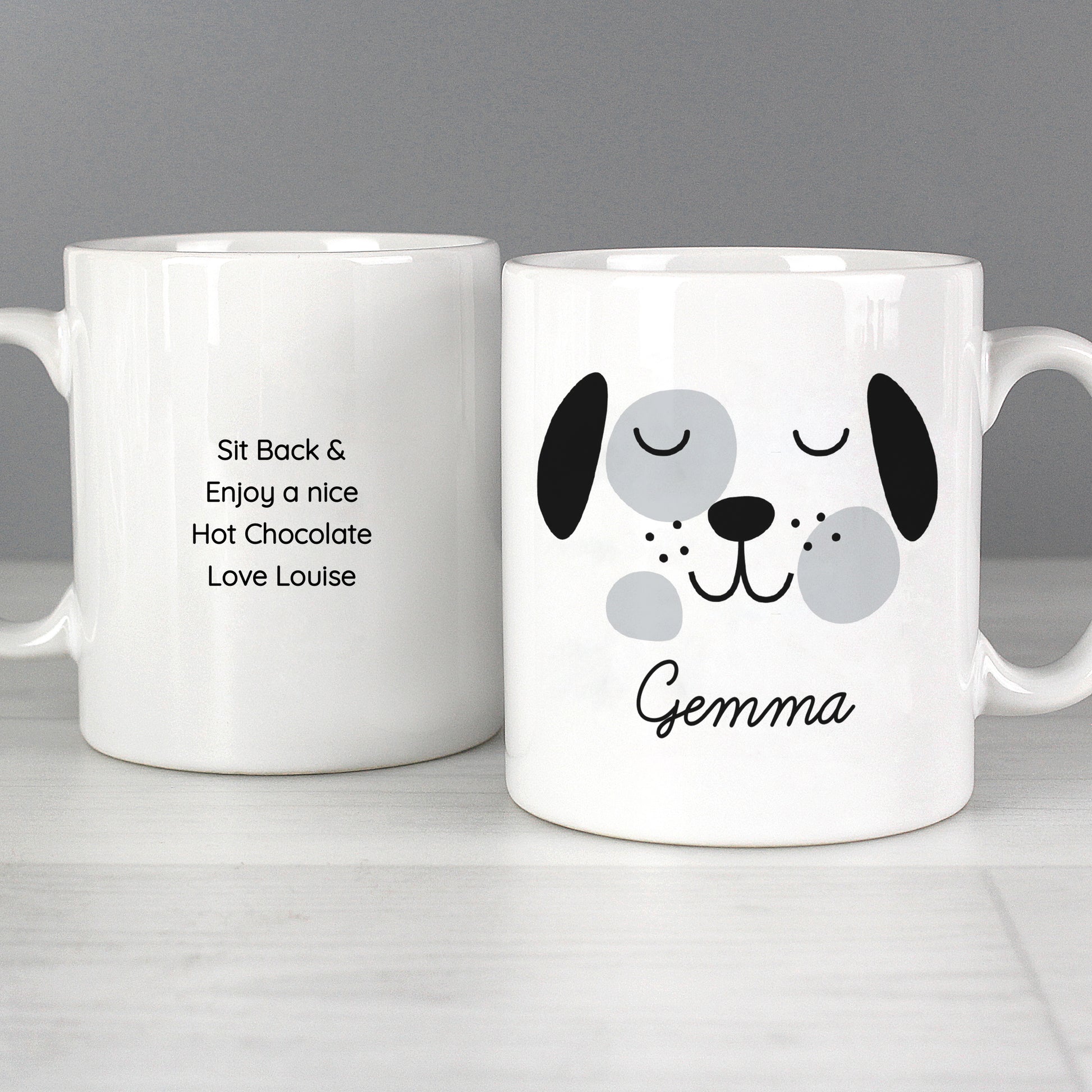 This mug can be personalised with any name on the front up to 12 characters long and a message over 4 lines with 25 characters available per line.