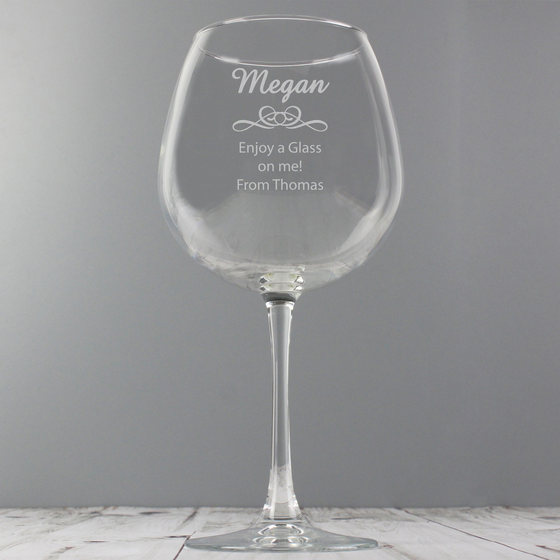 You can personalise this wine glass with a name up to 12 characters in length. You can then add a message below up to 3 lines of text, 20 characters per line. All personalisation is case sensitive and will appear as entered.