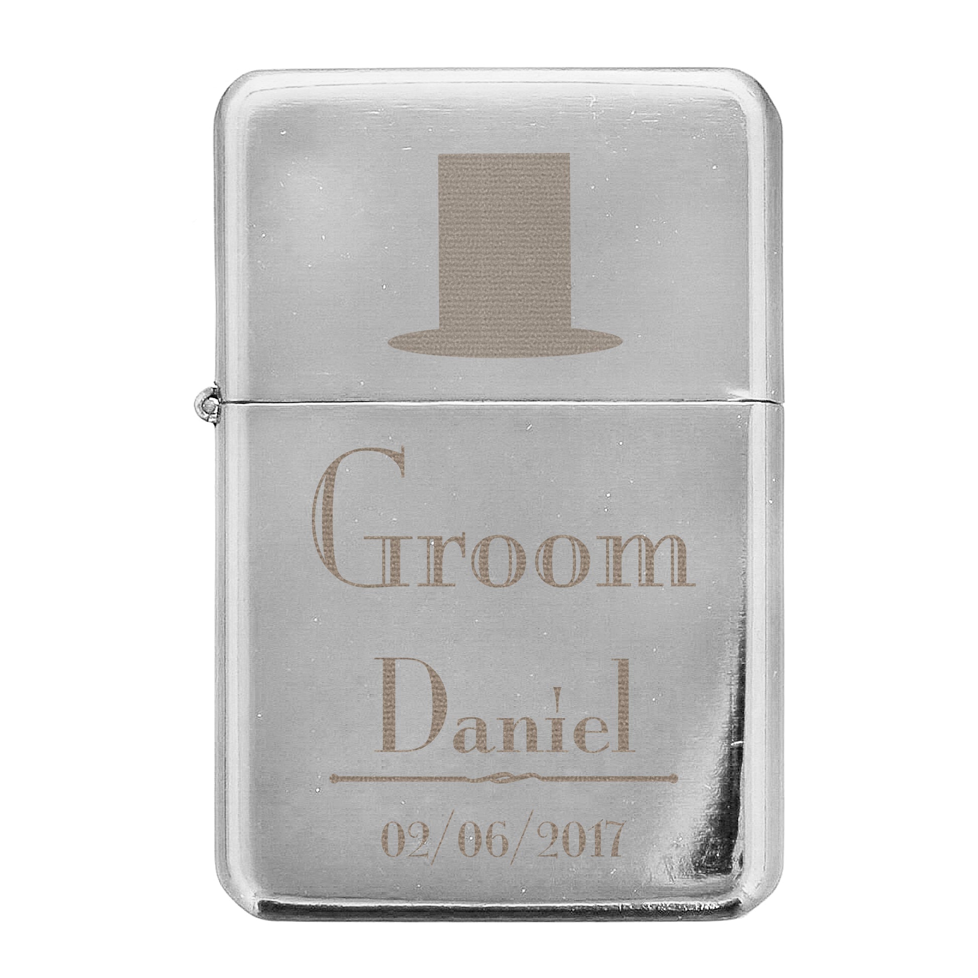 Personalise this Decorative Wedding Groom Lighter with a name up to 12 characters and a date up to 20 characters.