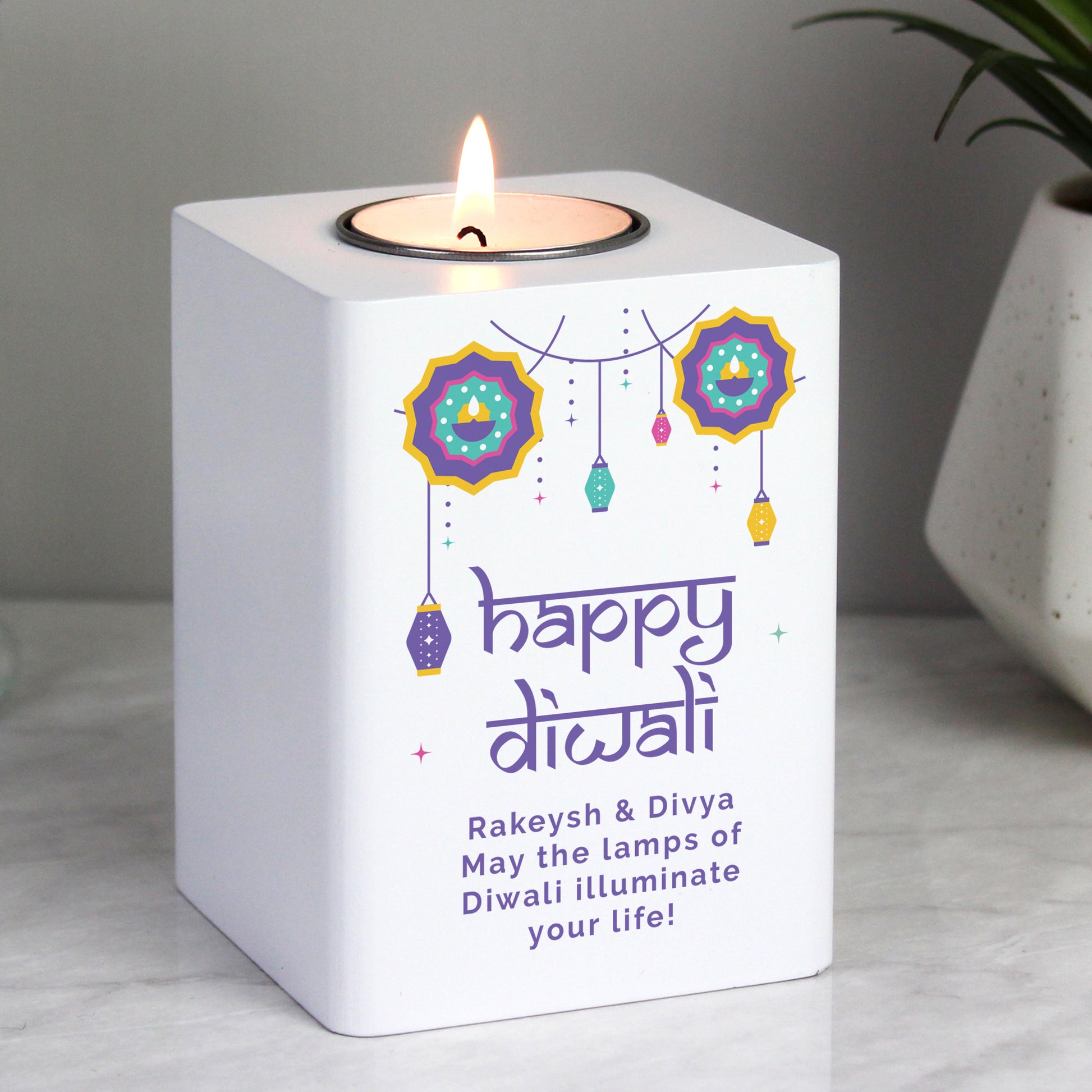 This personalised wooden tealight holder is a lovely gift to celebrate Diwali - the festival of lights.