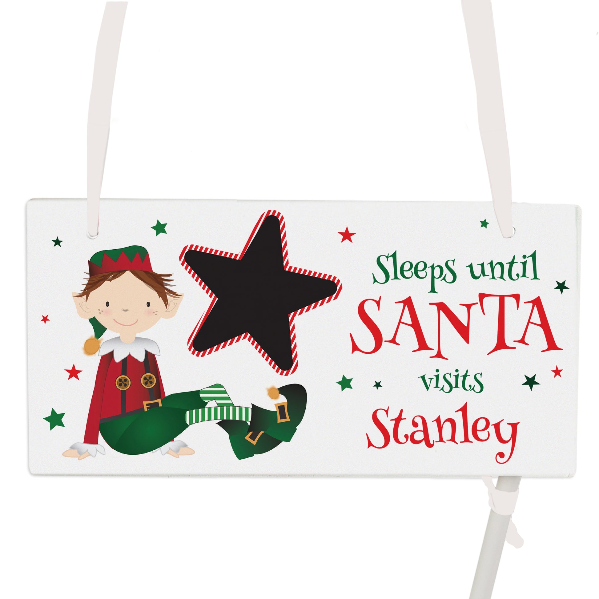 Personalised Elf Christmas Chalk Countdown Wooden Sign