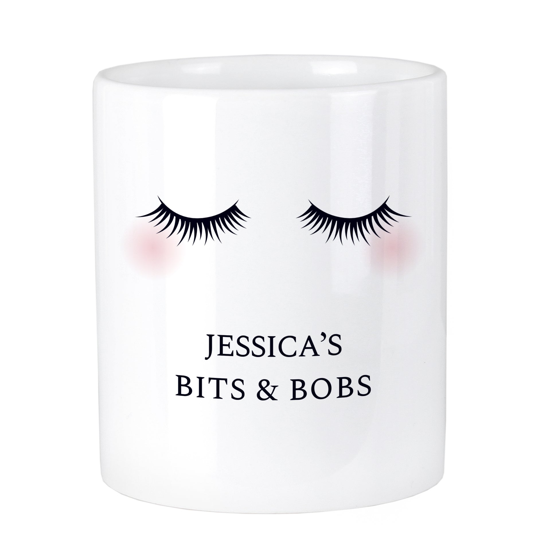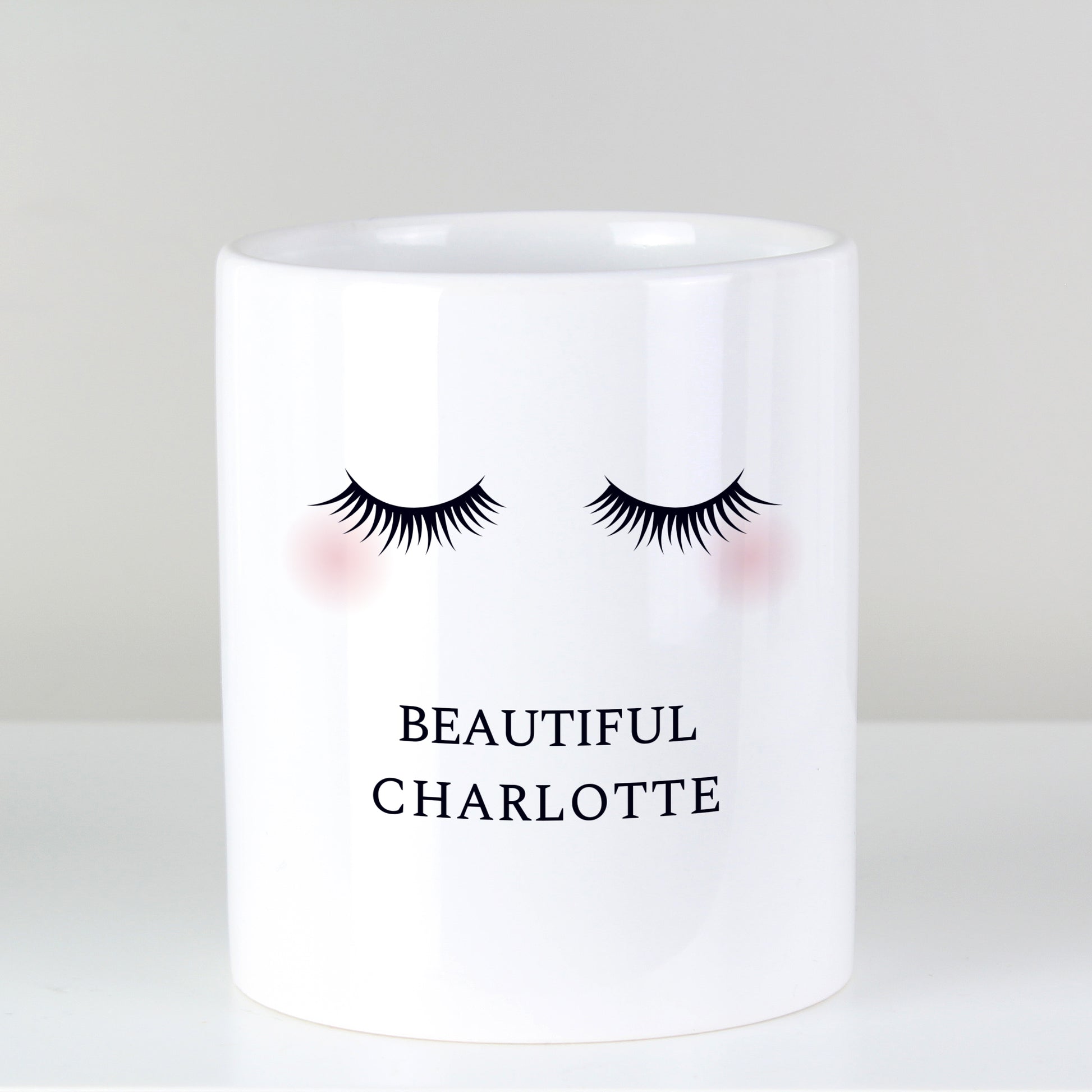 This Personalised Eyelashes Ceramic Pot is a great way to organise items like make up brushes.