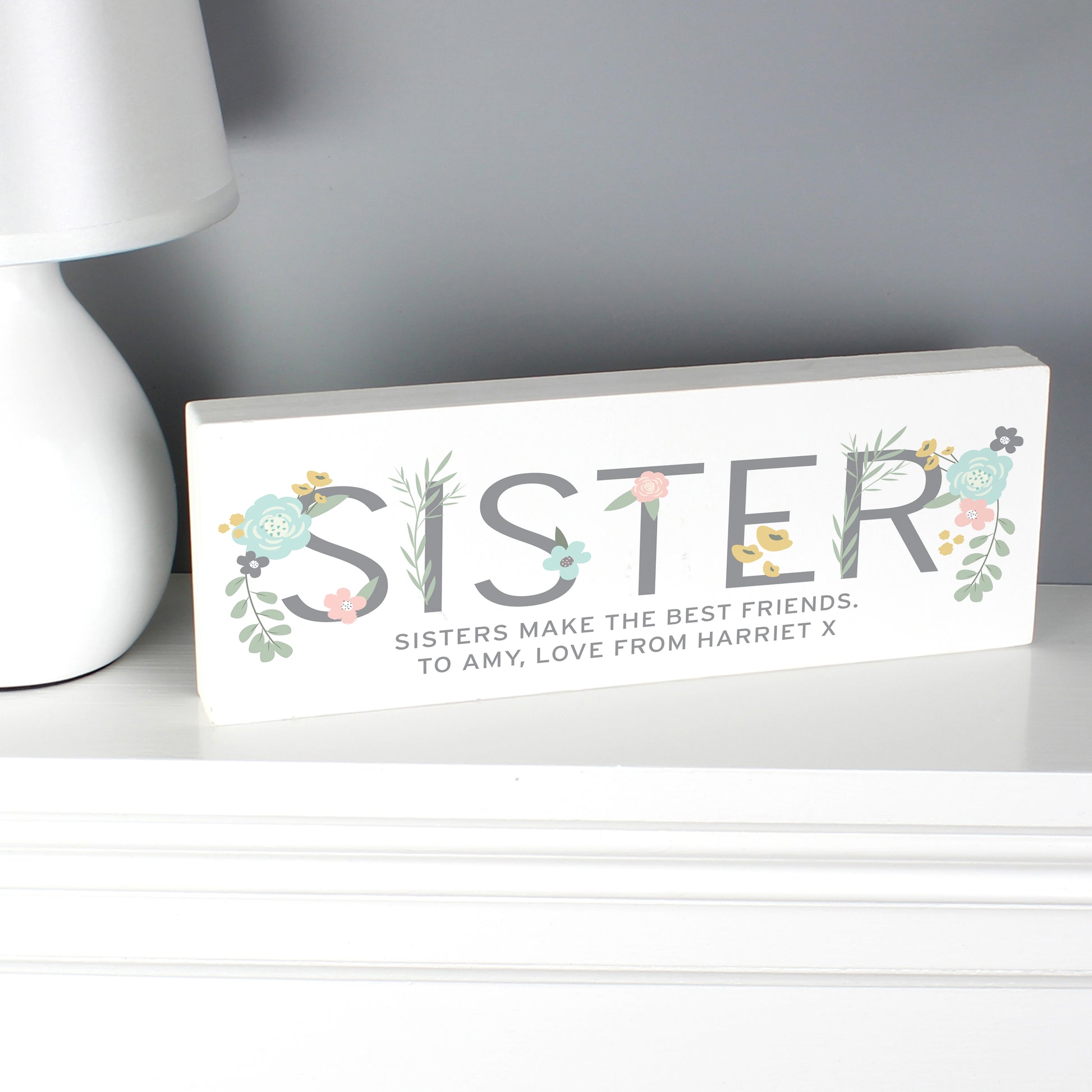 This Floral Sister Wooden Block Sign is the perfect modern gift to give on any occasion.