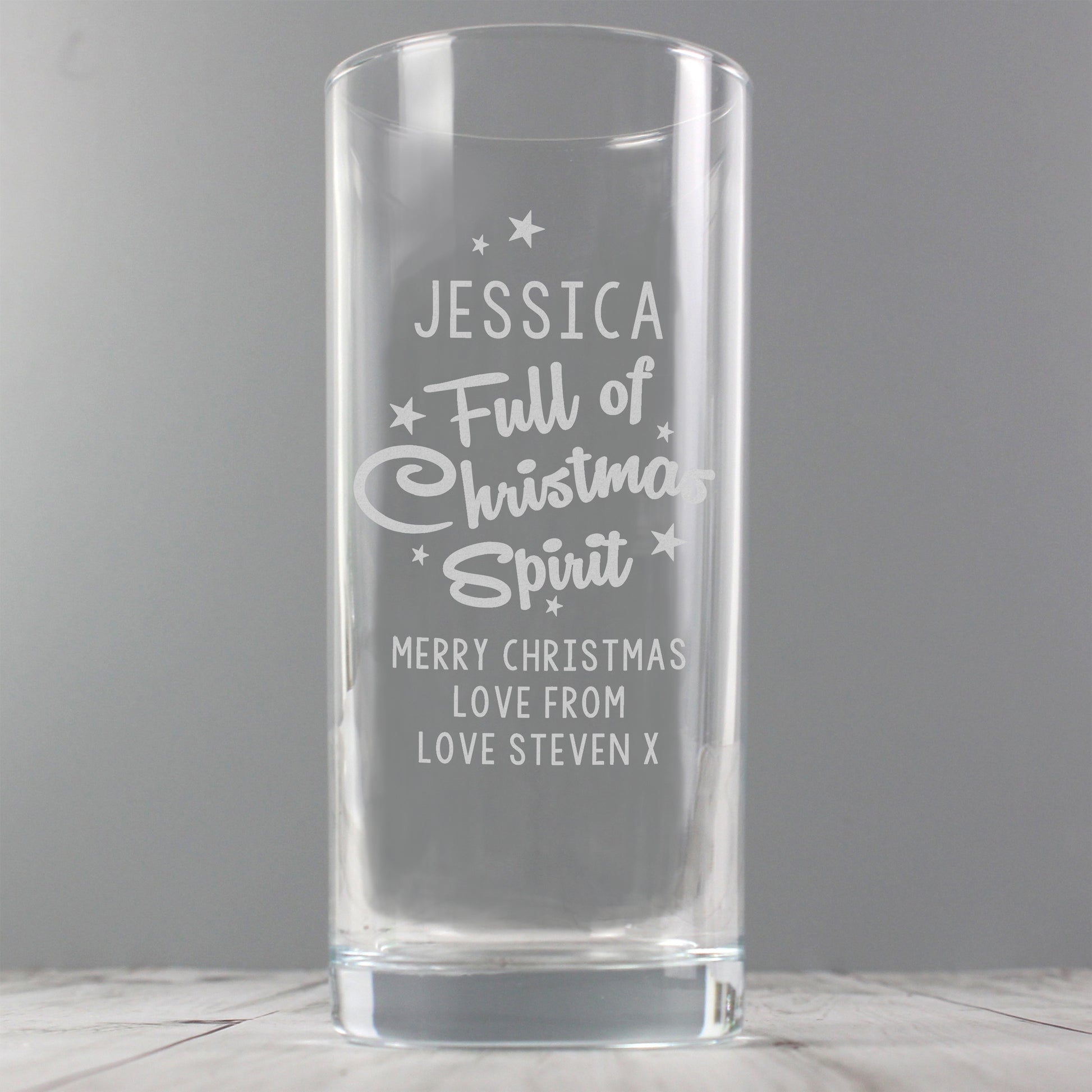 This Personalised Full of Christmas Spirit Hi Ball Glass is an ideal Christmas Gift
