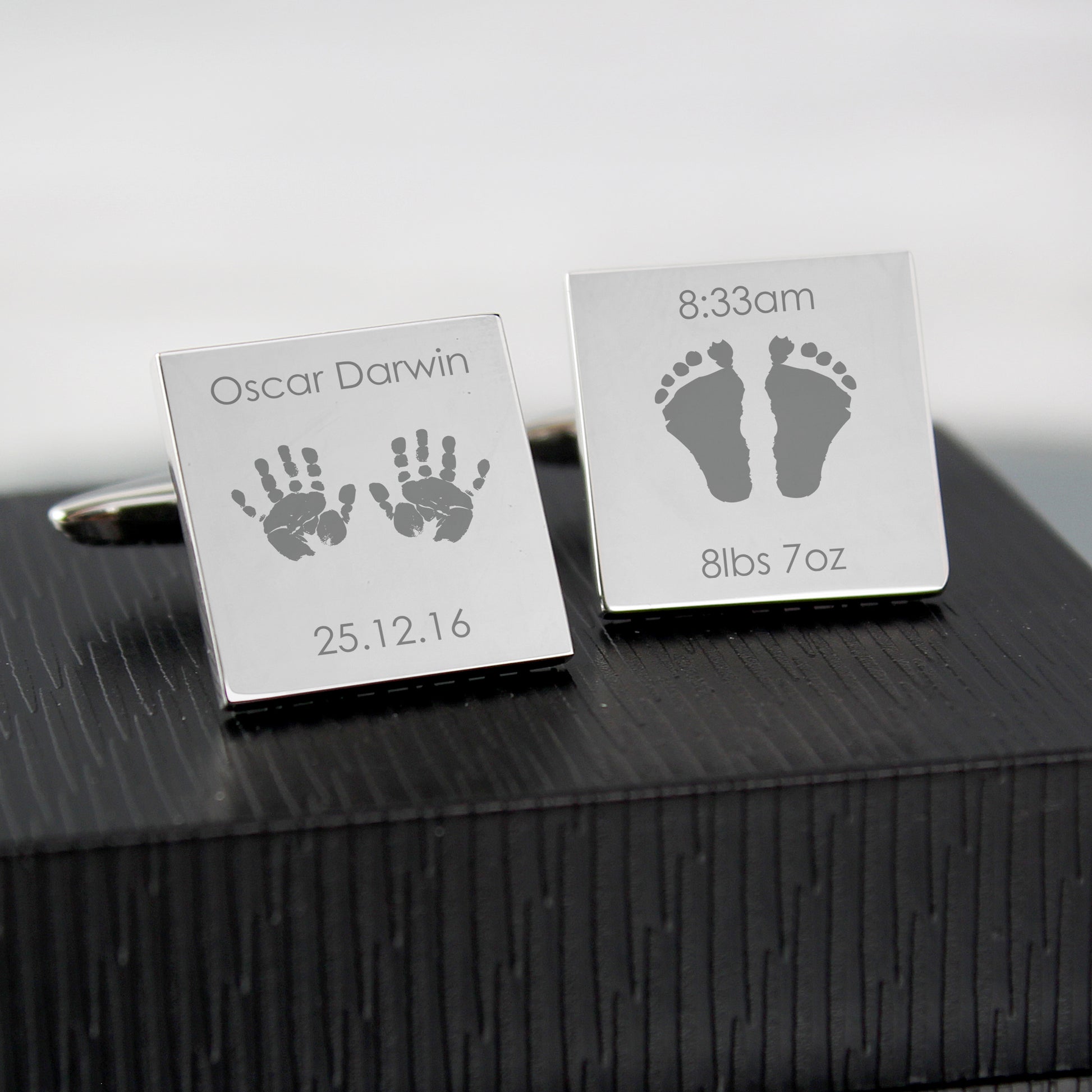 Celebrate a new baby with these Personalised Hands and Feet Square cufflinks