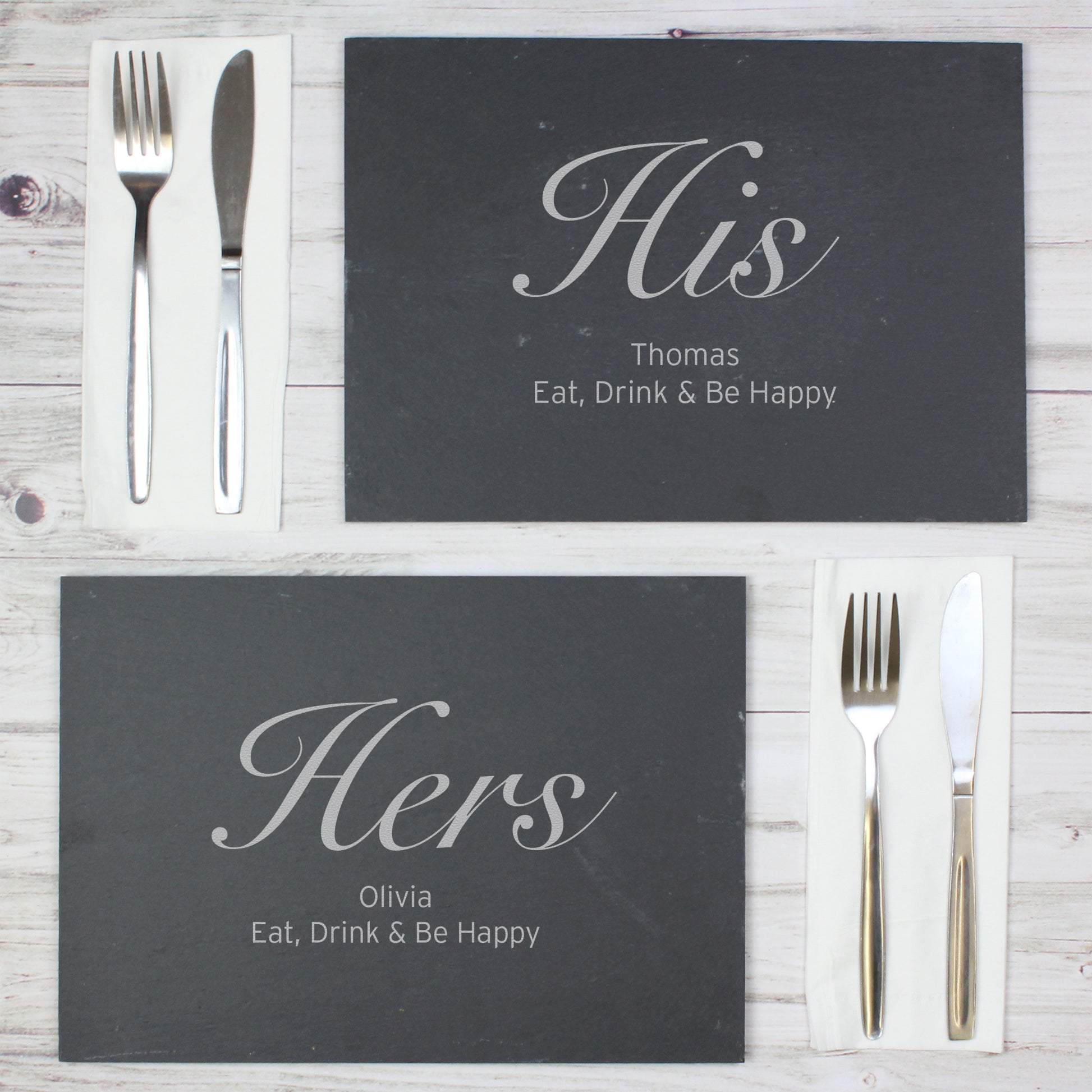 The placemats can be personalised with 1 line of text up to 20 characters on the 'his' placemat and 1 line of text up to 20 characters on the 'hers' placemat. Both placemats can also be personalised with an additional line of text up to 30 characters per line.