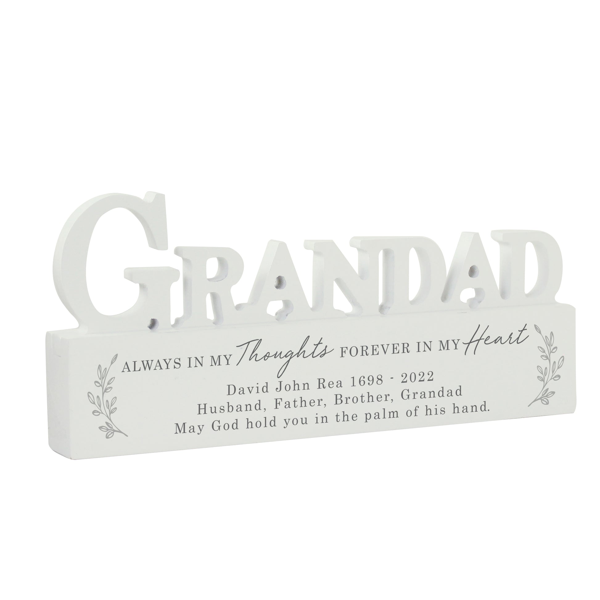 This Personalised In Loving Memory Wooden Grandad Ornament is perfect for remembering a loved one.