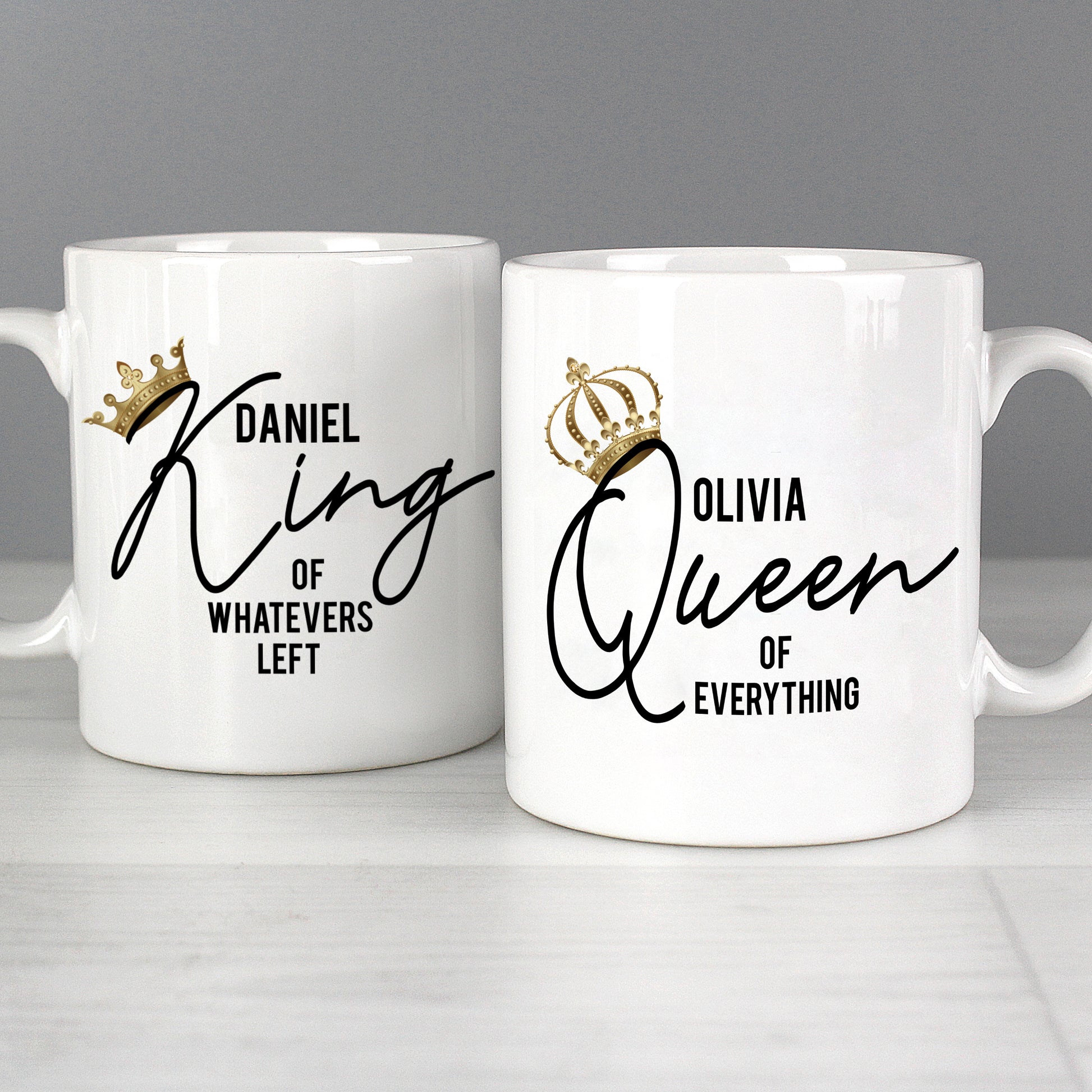 This stylish yet comical personalised King and Queen of Everything Mug Set is a perfect way to poke fun at your other half!