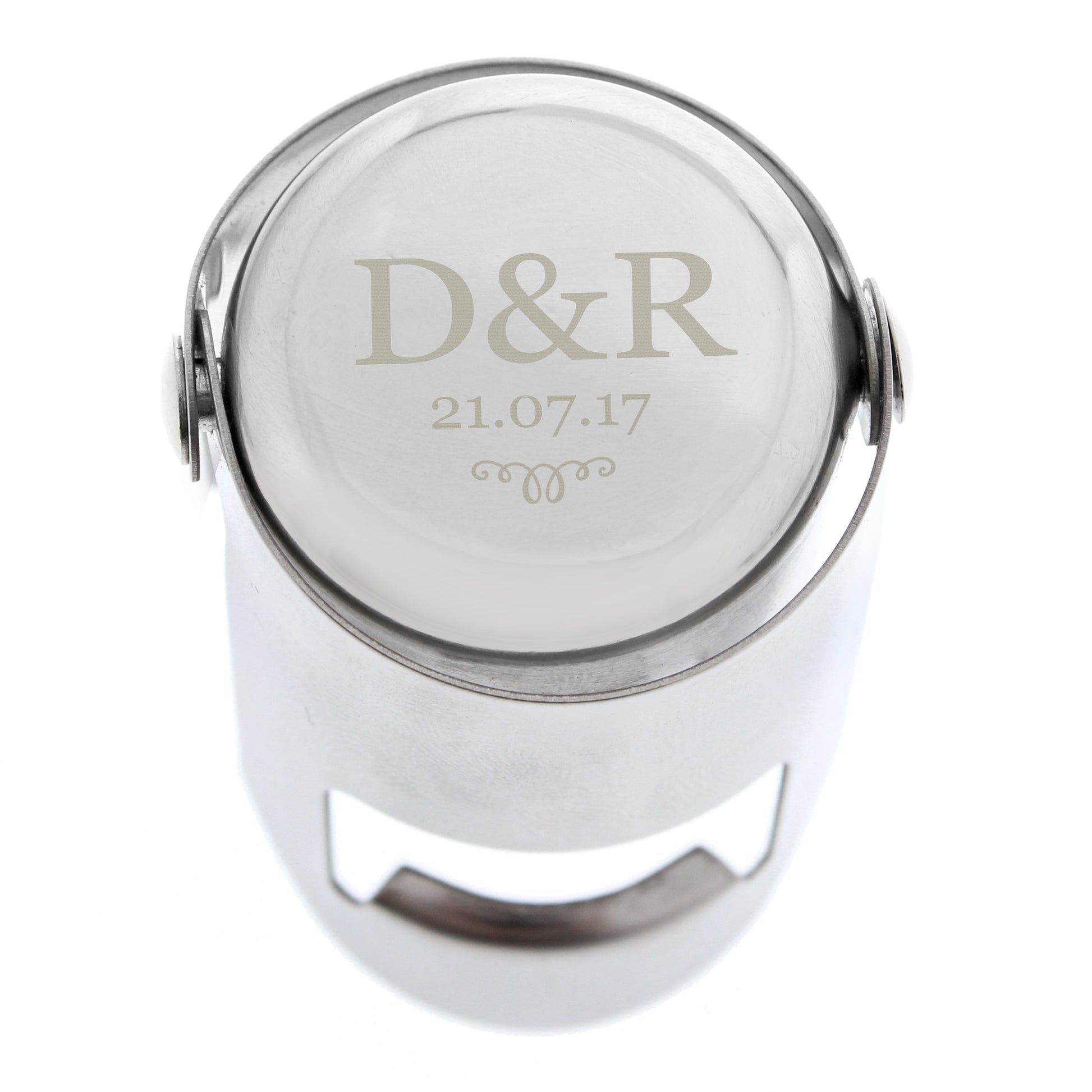 Our personalised Initials and Date Stainless Steel Bottle Stopper ensures the airtight closure of champagne bottles and wine bottles that use corks. Works equally well on Prosecco, Champagne and sparkling wine. It's perfect as a unique and thoughtful gift for weddings, anniversaries, engagements and Valentine's Day.