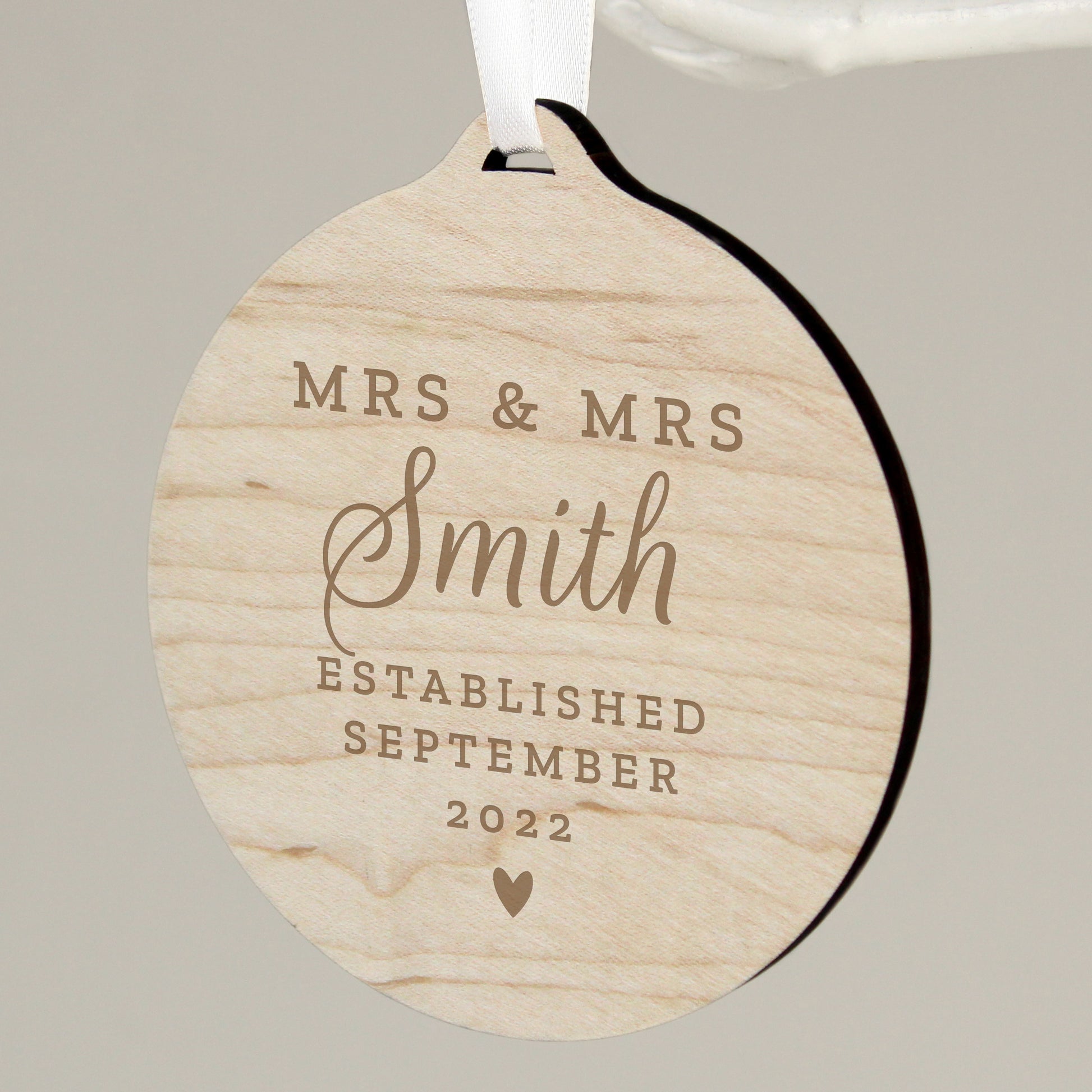 Personalised Mr & Mrs Round Wooden Decoration