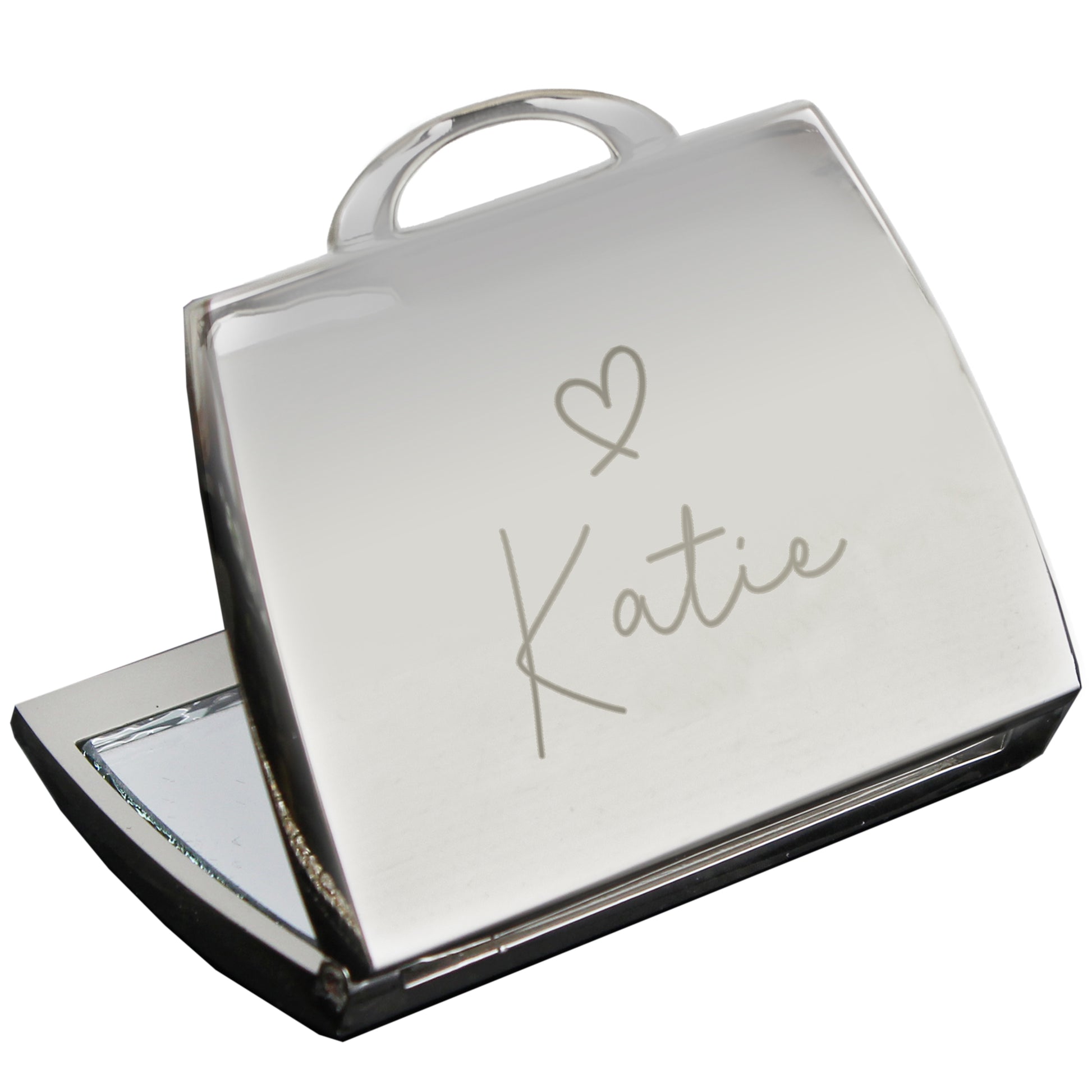 This personalised handbag shaped compact mirror is a stunning gift that is well suited for any occasion.
