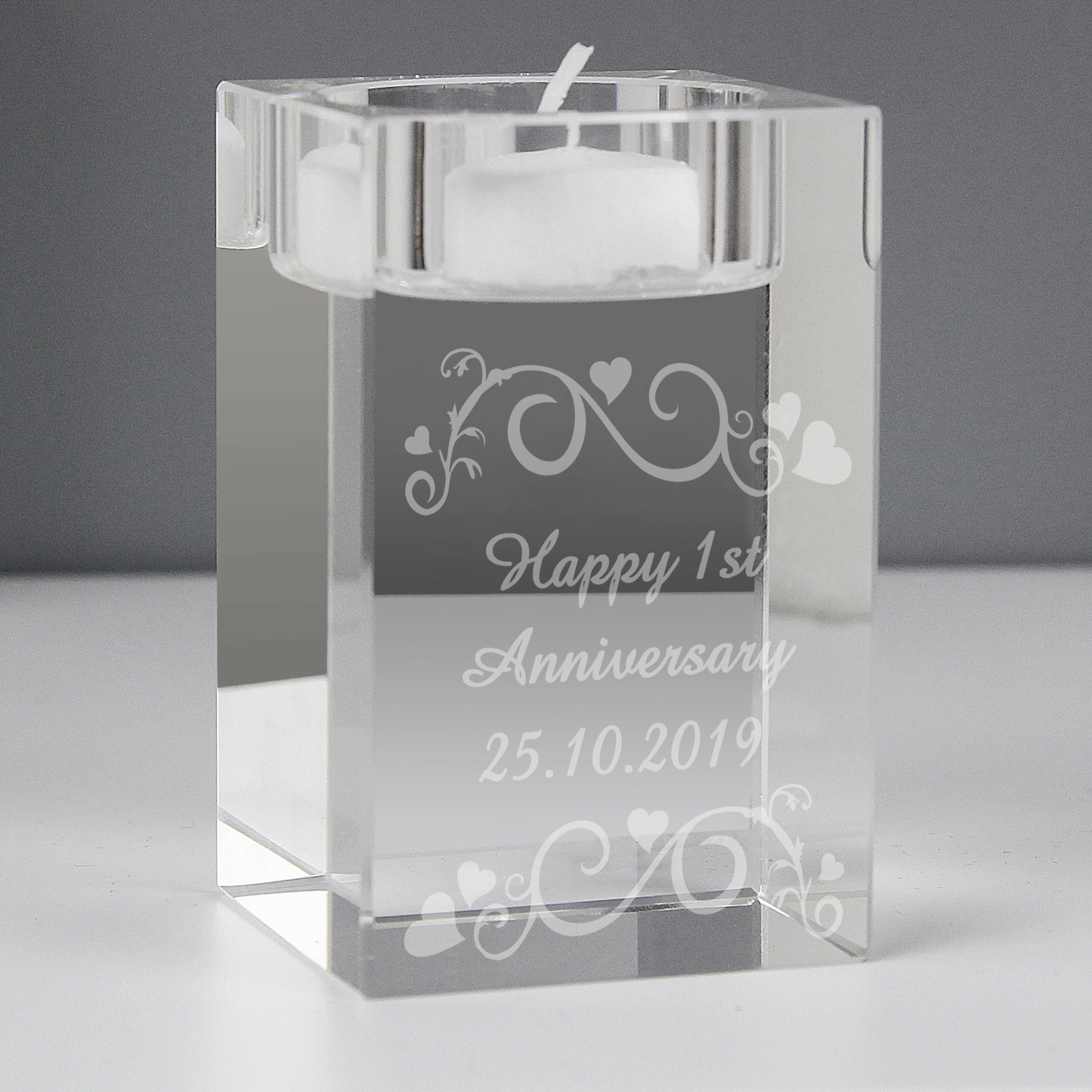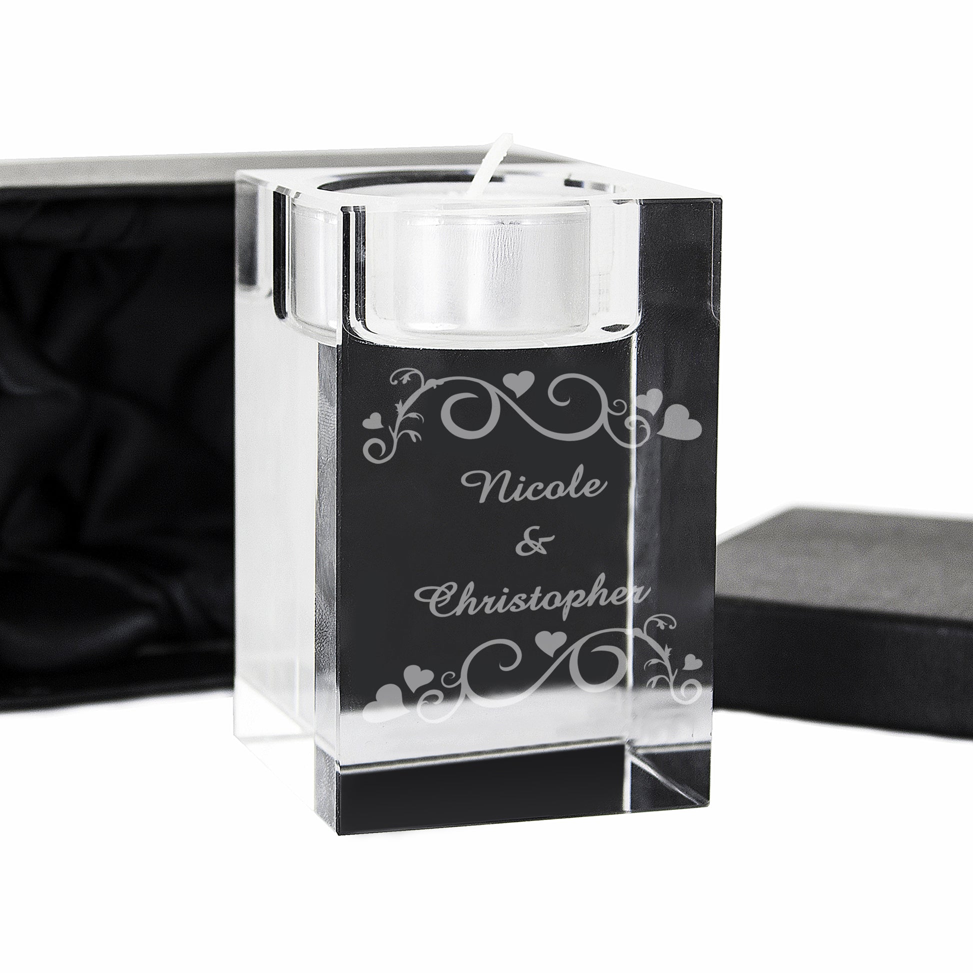 Personalised Ornate Swirl Glass Tea Light Candle Holder