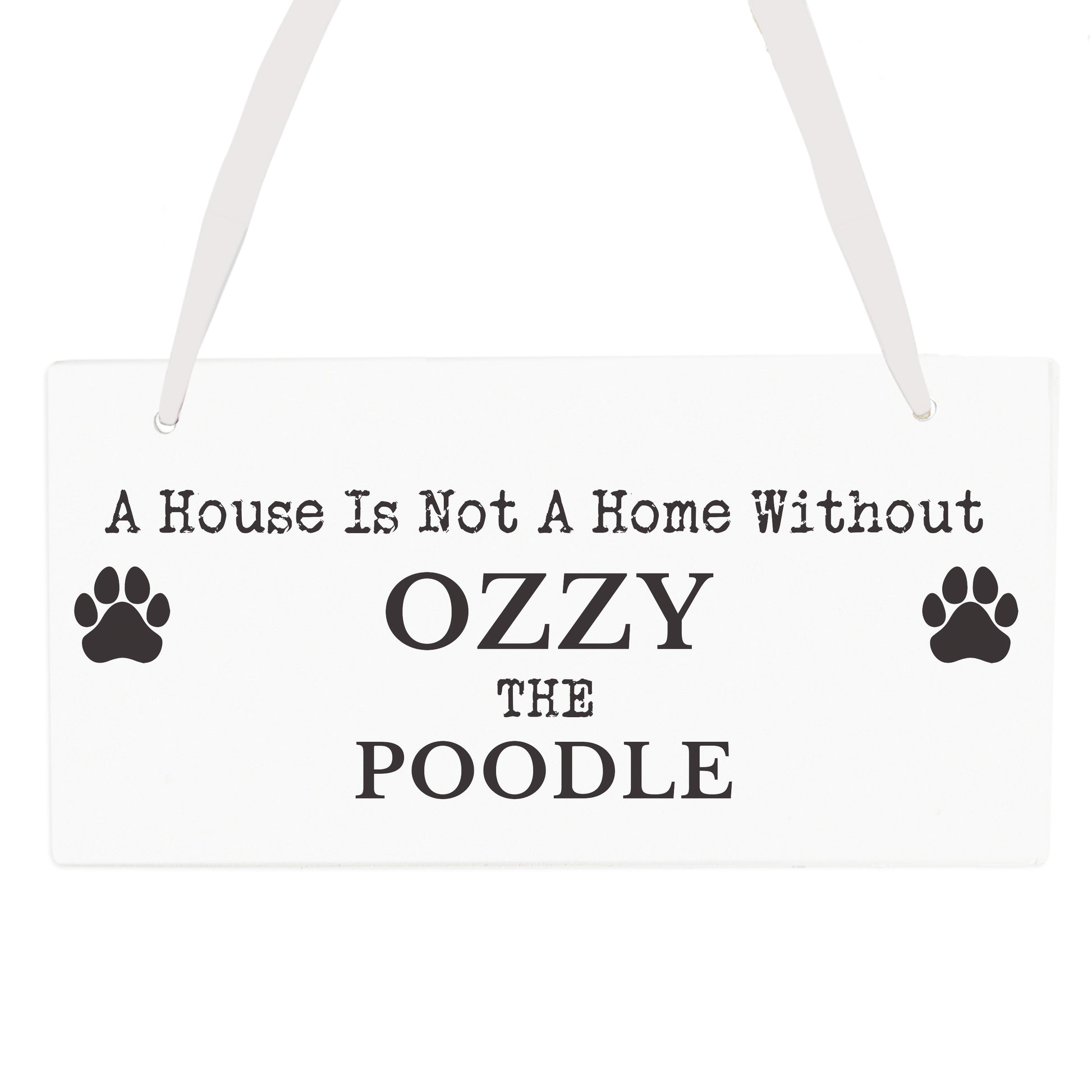 This Paw Print Dog Breed Wooden Sign can be personalised with 2 lines of text as below