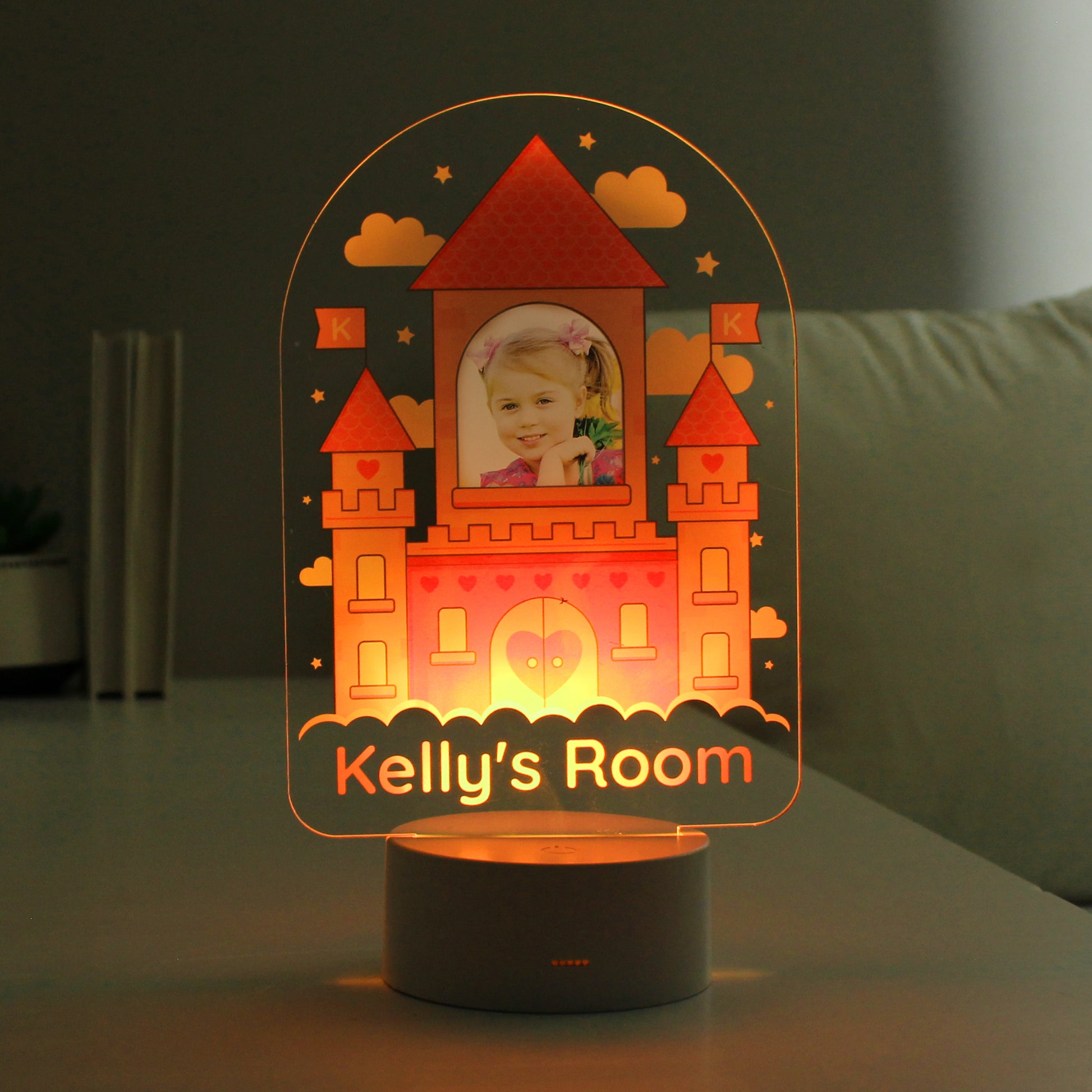 Personalised Pink Castle Photo Upload LED Colour Changing Night Light
