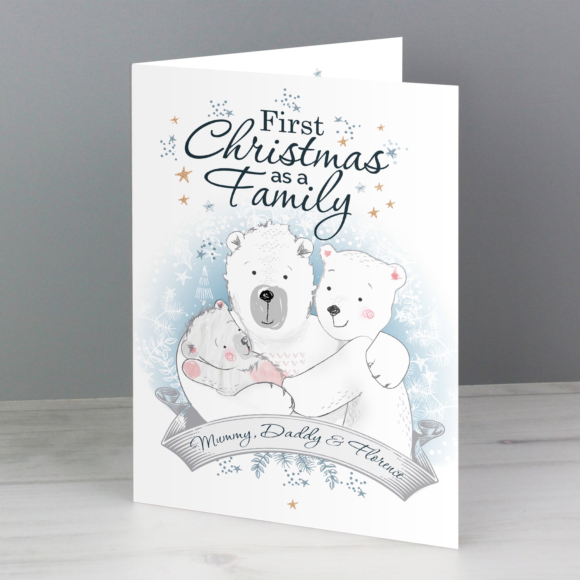 Personalised Polar Bear '1st Christmas As A Family' Card