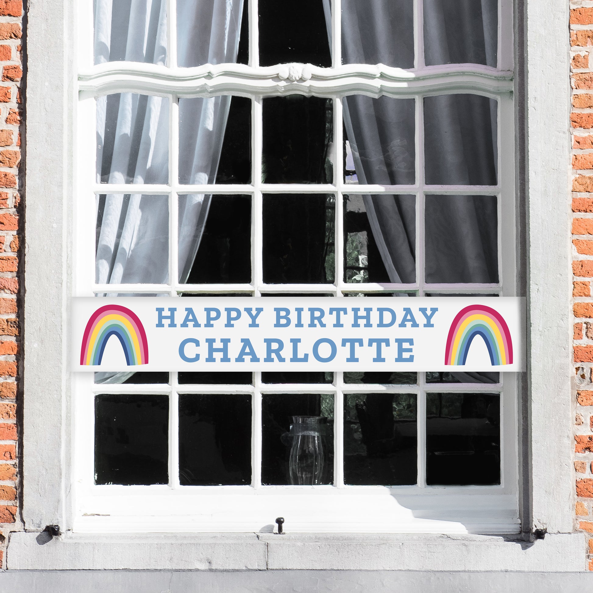 Personalise this cute Personalised Rainbow Banner with a message spread over two lines, using up to 20 characters per line.