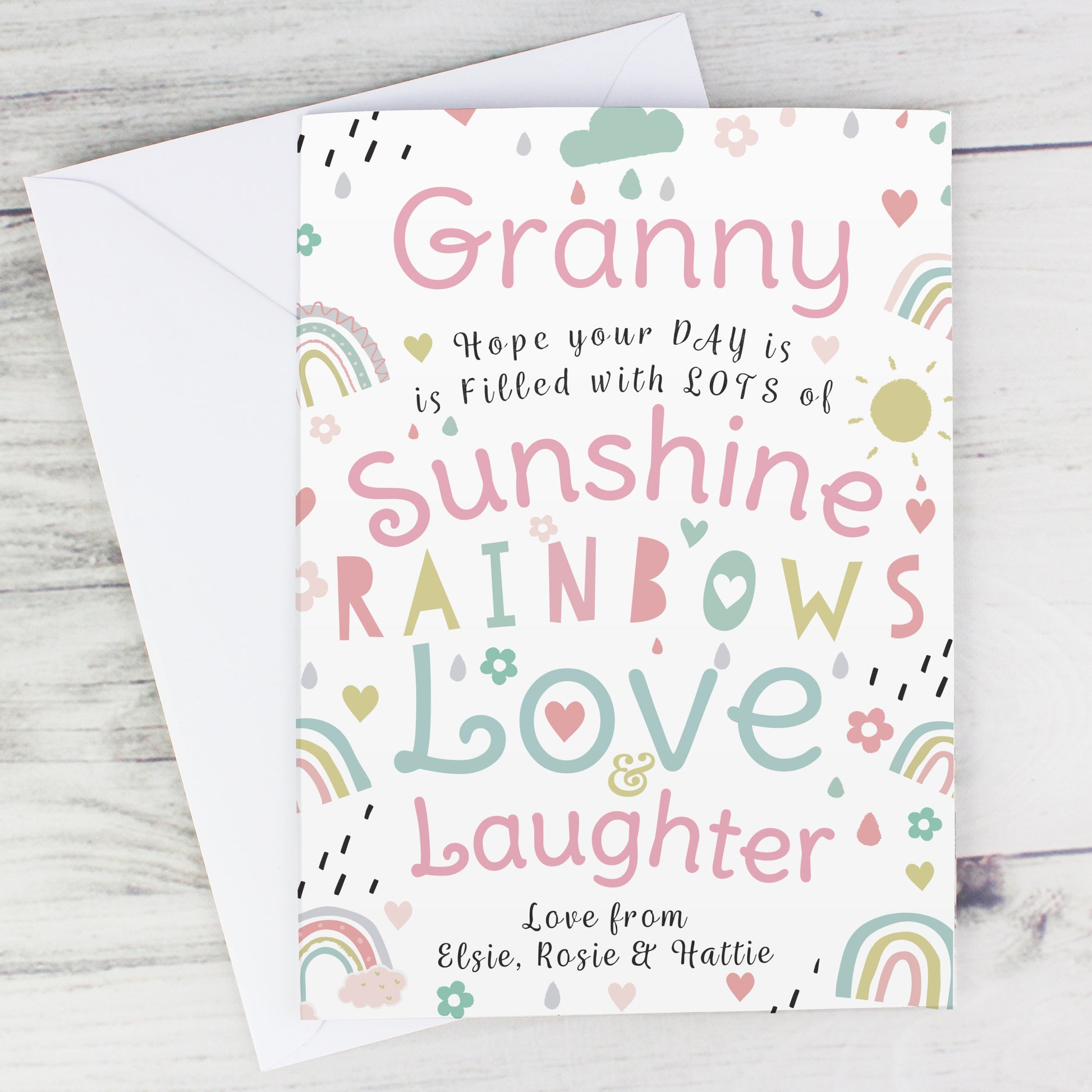 "Hope your day is filled with lots of sunshine and rainbows love and laughter" is fixed text and cannot be changed.