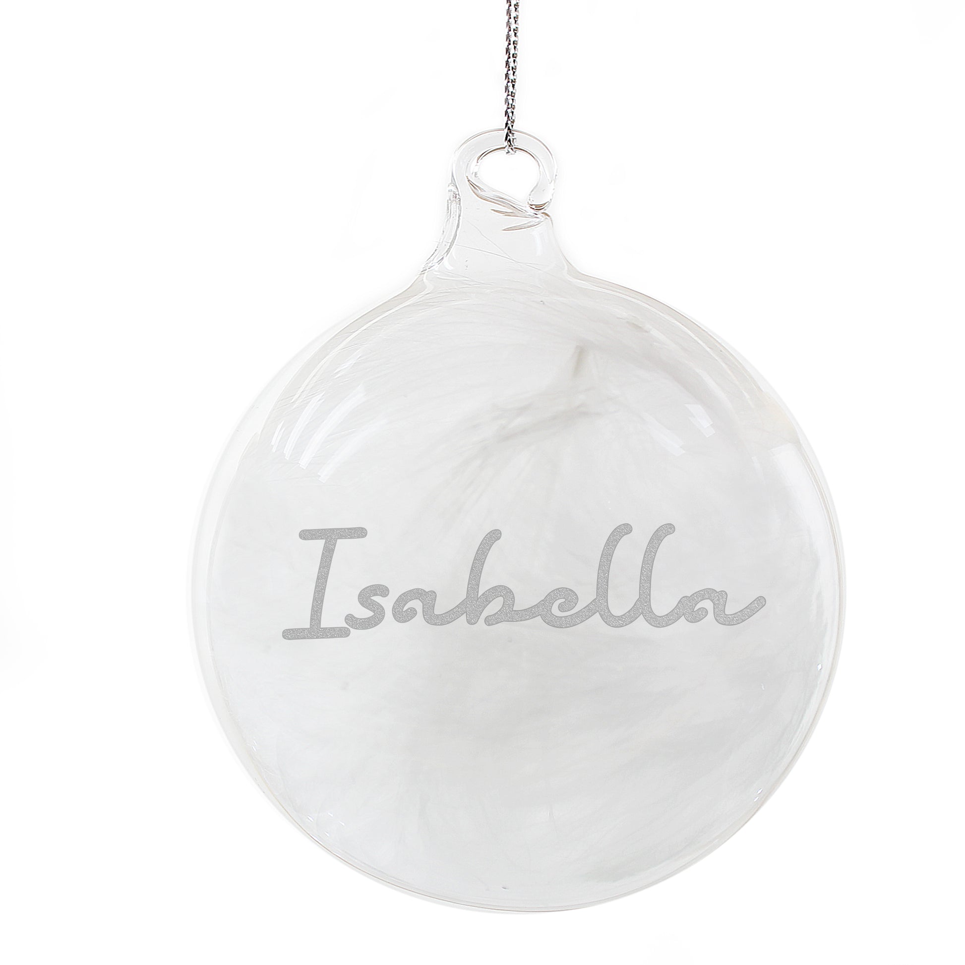 This Personalised Silver Glitter Name Only Feather Glass Bauble will make a stunning addition to the Christmas tree.