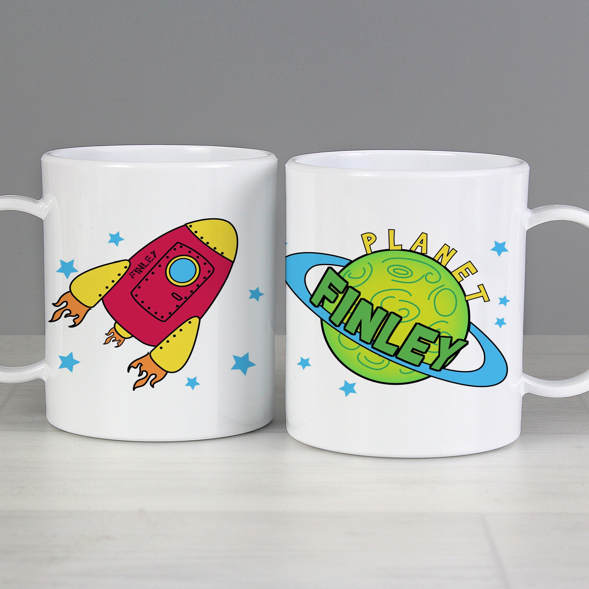 Personalise this Space design plastic mug with any name up to 12 characters.