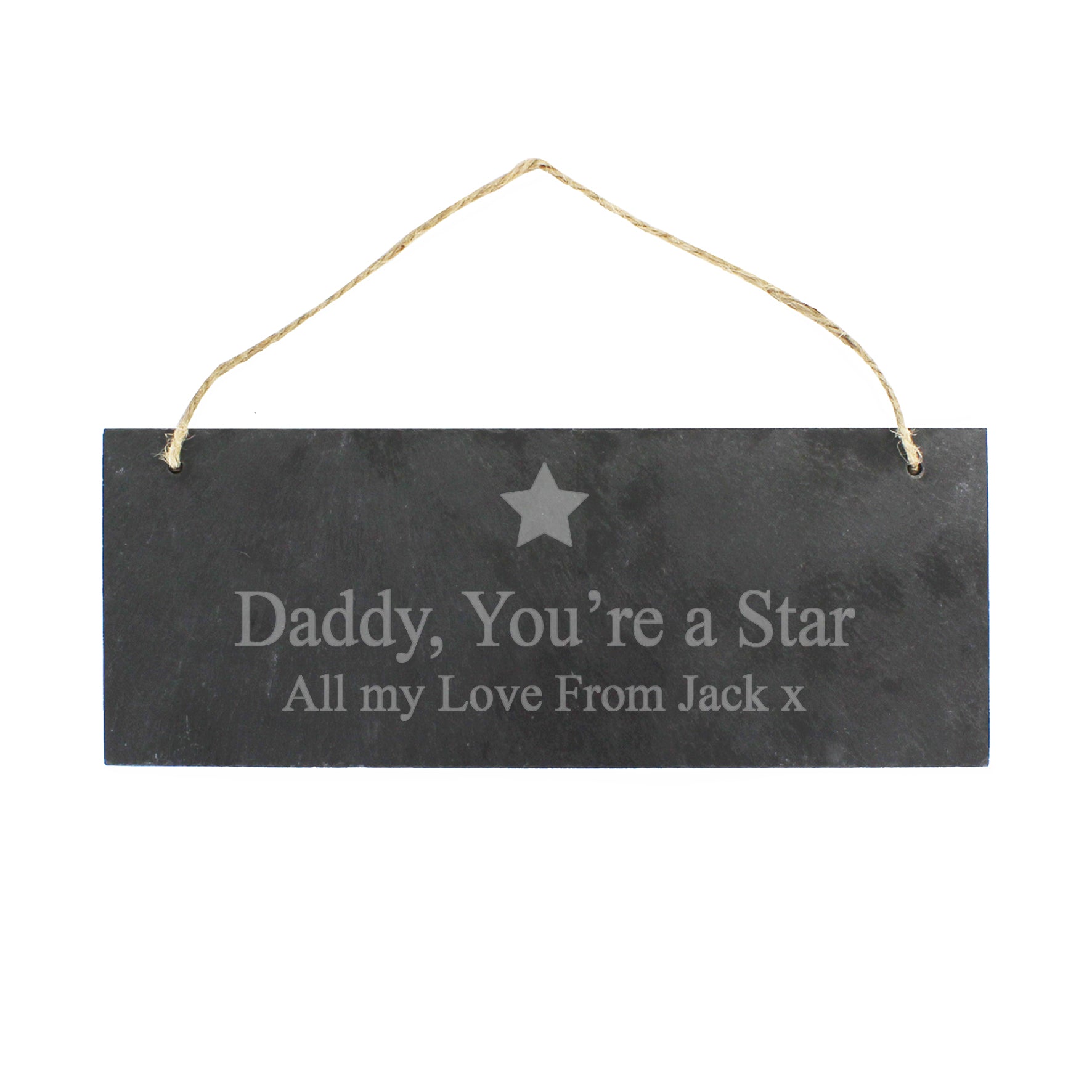 Personalise this Star Motif Slate Door Sign with one line of 25 characters which will be in bold, and one line of 40 characters for a longer message. Above the personalisation is a cute star motif. The door plaque has a piece of natural, rustic string which enables this item to be hung up.